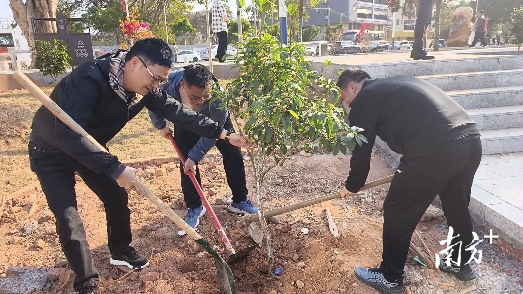 会前,乡贤代表实地参观坭陂圩镇提升改造成果,沿着示范主街、美丽河道、文体广场等点位边走边看,详细了解圩镇规划建设、人居环境整治、公共服务配套等情况,切身感受家乡在“百千万工程”带动下发生的可喜变化,对圩镇颜值气质双提升、发展活力持续增强给予高度评价。与会领导与乡贤代表共同来到绿美生态小公园植树点,开展乡贤林植树活动。大家挥锹铲土、扶苗填坑、浇水培土,分工协作、配合默契,合力栽下一株株树苗,为绿美坭坡增添新绿,也种下对家乡未来发展的美好期盼。