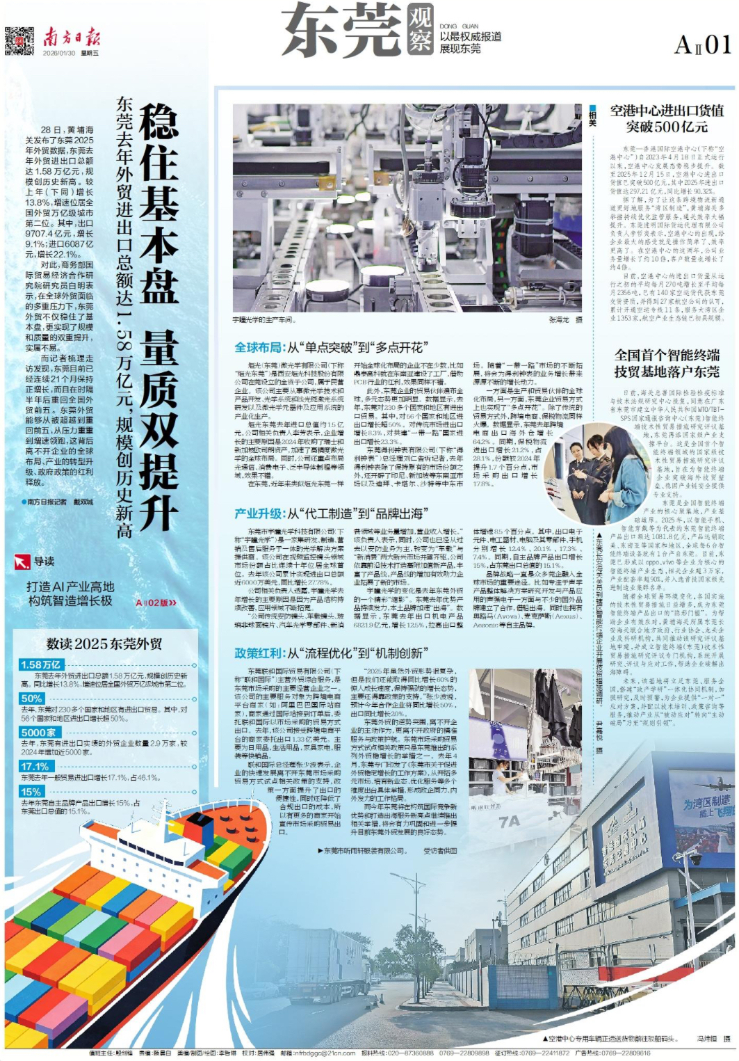 对此,商务部国际贸易经济合作研究院研究员白明表示,在全球外贸面临的多重压力下,东莞外贸不仅稳住了基本盘,更实现了规模和质量的双重提升,实属不易。