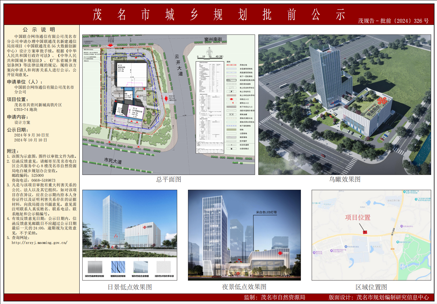 据悉,项目规划总建筑面积约1.8万平方米,分两期推进。其中一期投资约1.5亿元,将建设近8000平方米通信机房楼并部署AI算力集群、边缘云节点等前沿设施,目标将其打造成粤西地区规模最大、标准最高、能耗最优的算力枢纽与智慧城市运行中枢。