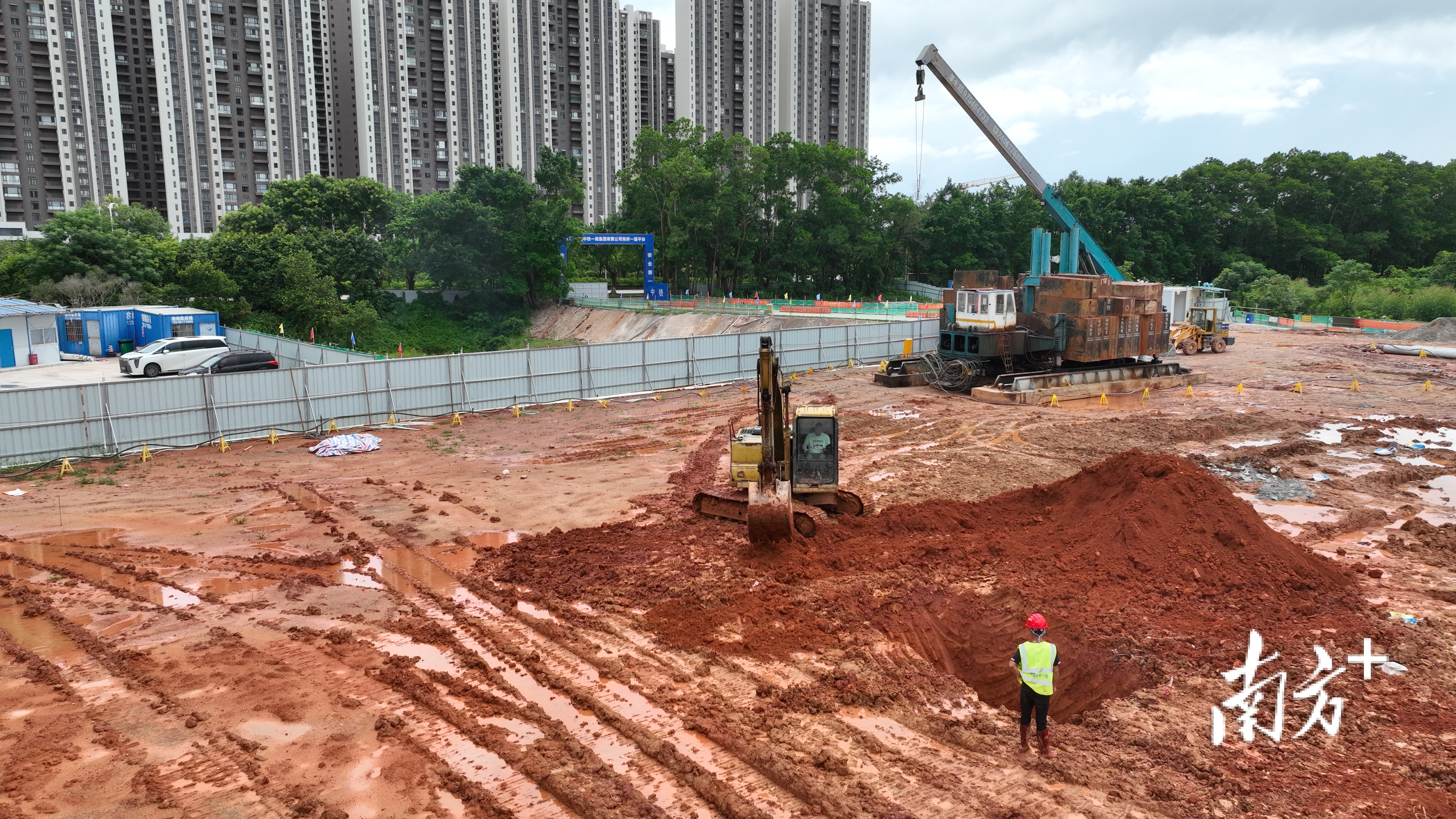 近期降雨持续,但工程建设依旧有序推进。