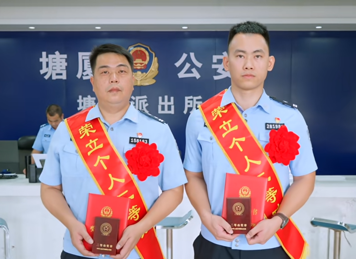 其中,东莞市公安局塘厦分局民警赵庆辉、温东林因涉险潜入深水涵洞成功营救被困司机的英勇事迹获此荣誉。从彻夜值守的巡查到生死一线的营救,赵庆辉、温东林用行动诠释了“人民公安为人民”的铮铮誓言。