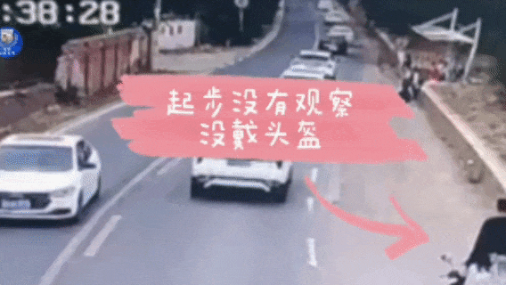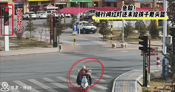 ▲家长骑行电动车闯红灯,未给孩子戴头盔,致孩子头部受伤