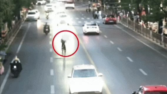 ▲学生骑自行车逆行,变道时被后方车辆撞倒