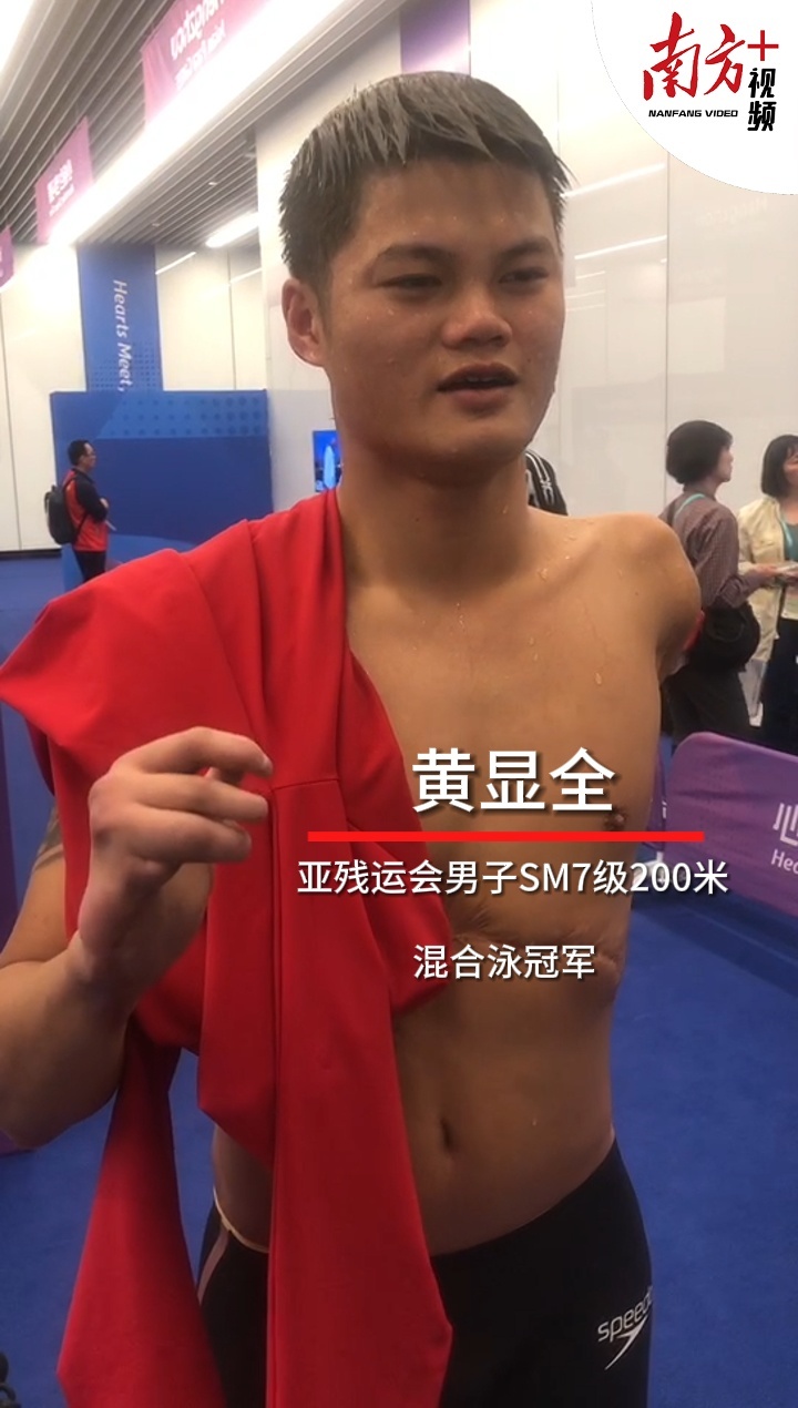 10月23日晚,杭州亚残运会男子SM7级200米个人混合泳比赛打响,广东运动员黄显全在水中靠着一只手臂奋力划动,最终夺冠。接下来,他将继续参加多场比赛,争取发挥出全部的实力,“当我戴上泳帽,便是战场上的那头猛兽!”详情>>