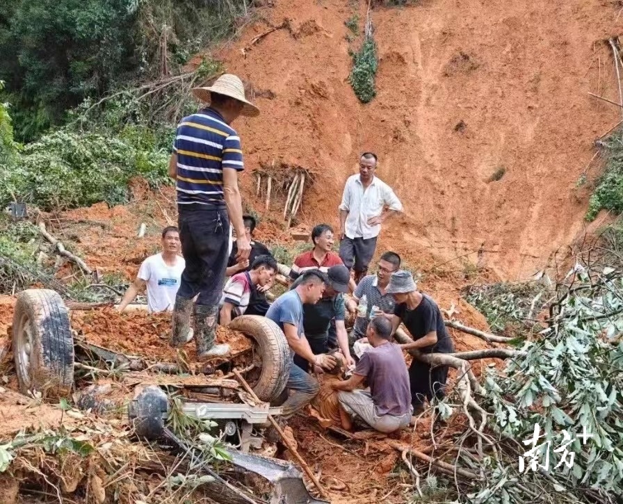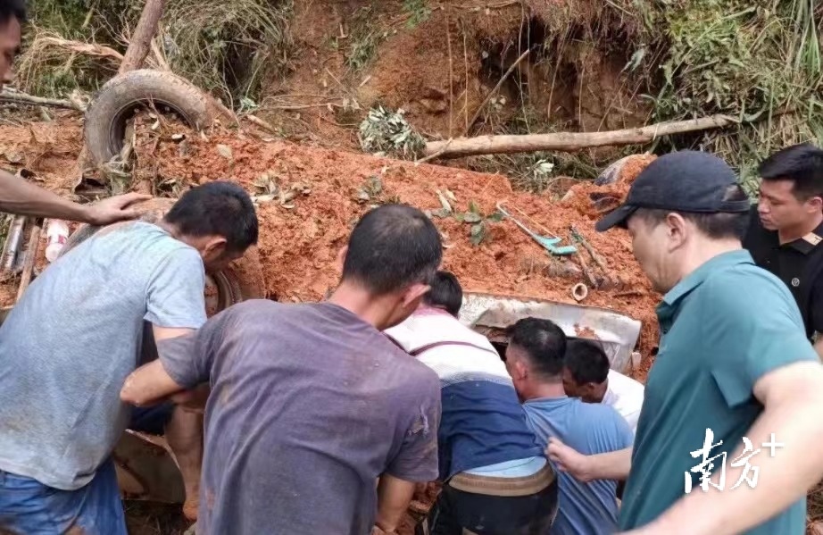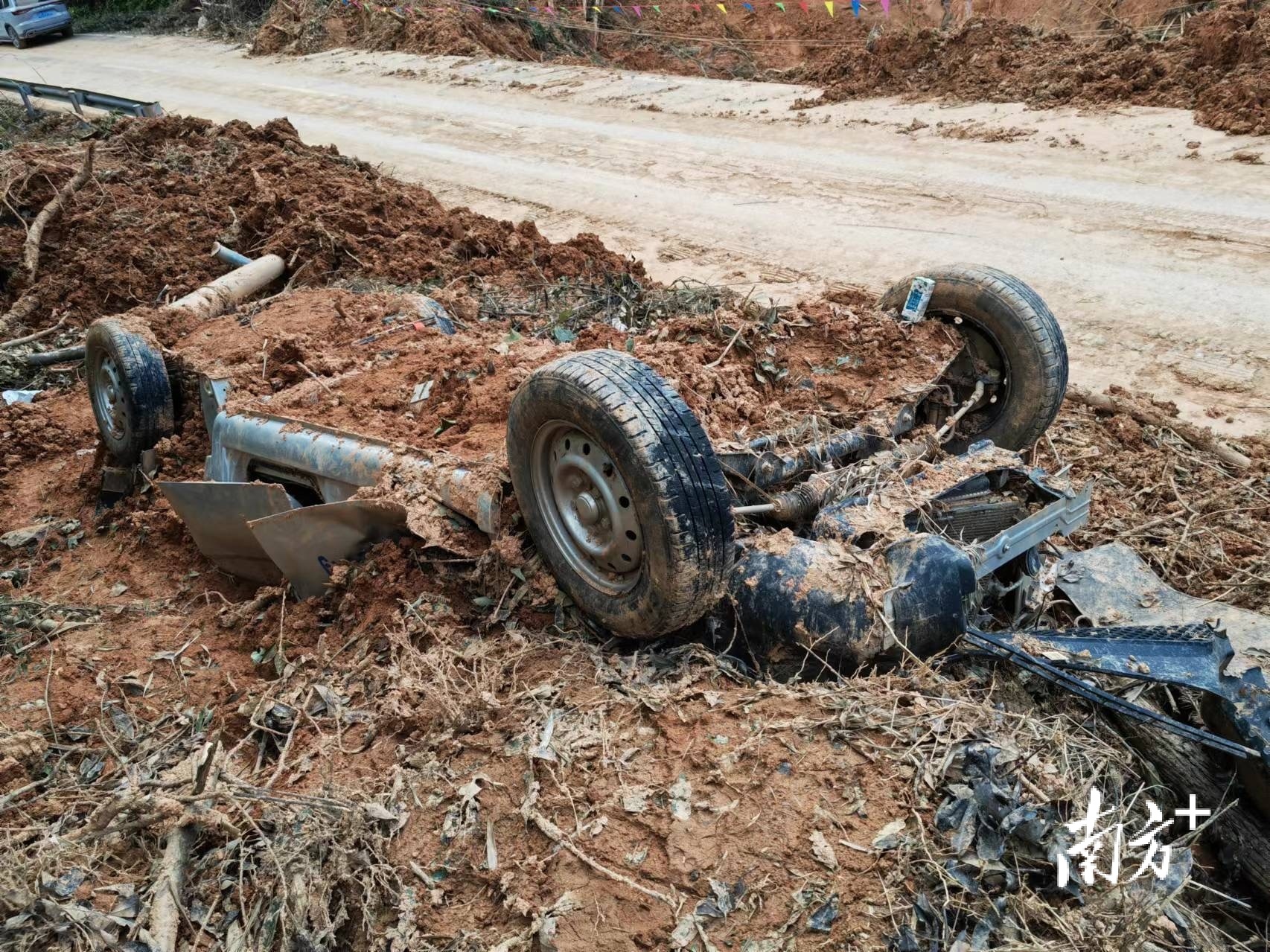 “现场一片混乱,整辆车已经是‘四脚朝天’,车身几乎全部被淹没。”湍溪村委会委员谢金松回忆说,由于没有专业工具,最初赶来的村民们就用柴刀、锄头等代替,甚至徒手挖泥,为曾忠华挖凿出一个空间更大的呼吸通道。