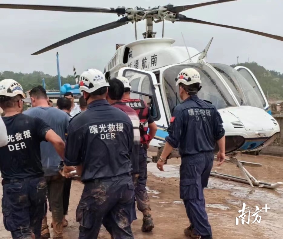 待曾忠华稍微恢复体力后,镇村干部和村民们翻过一个又一个泥堆,将他抬到了两公里外的湍溪大桥。在那里,紧急救援的直升机将他送往医院治疗。