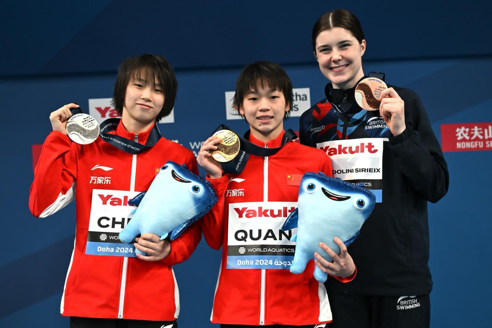 最后一轮,两人同样选择了5253B这一动作,全红婵得到86.40分。尽管陈芋汐奋力追赶,在这一跳上得到91.20分,但没能抹平分差。最终,全红婵以436.25分夺冠,拿到个人世锦赛单人项目的首枚金牌。陈芋汐以427.80分获得银牌,英国选手获得季军。