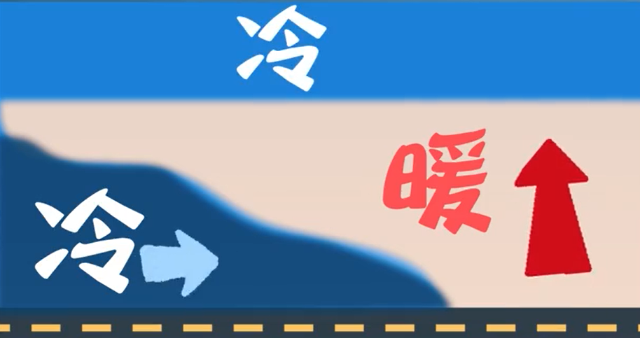 有一个很重要的前提是有“三明治”结层。当强冷空气过来时,如果当地此前比较暖,冷空气会插入暖空气中,并抬升暖空气,此时高层仍是冷空气层,所以形成了“下层冷、中层热、上层冷”的温度层结,就像三明治。