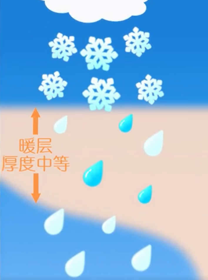 在这种环境下,高层的冰晶或0℃以下的雨滴,落到中层区域后融化成水滴,但随后下落到底层低于0℃的冷层后,雨滴气温又下降到0℃以下,继续变成冰粒或过冷水滴。最后一旦落在植物、地面上,就马上冻结成外表光滑而透明的冰层。