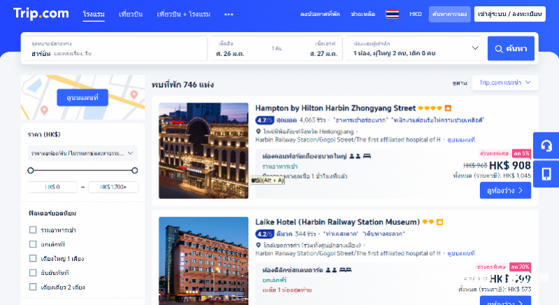 携程国际版Trip.com泰国站点上哈尔滨搜索结果页1月31日,携程将联合泰国国家旅游局举办24年首场,也是免签协议签署后,泰国首场面向中国游客的直播活动。泰国泰国旅游与体育部部长、泰国国家旅游局局长等嘉宾将亮相携程直播间,带货针对中国游客的热门旅游线路、机票、酒店等产品,价格最低可至平日5折。免签加上富有竞争力的产品,将进一步激发中国游客赴泰旅游热情。