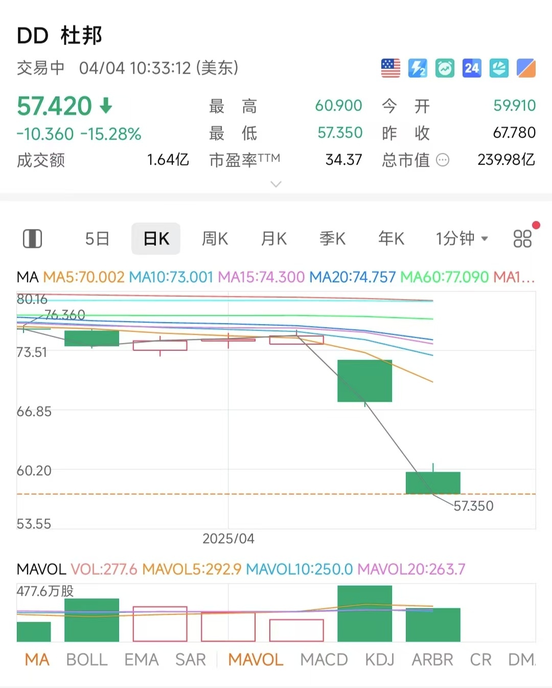 受被查消息影响,杜邦股价盘中暴跌,跌幅超15%。4月4日,因杜邦中国集团有限公司涉嫌违反《中华人民共和国反垄断法》,市场监管总局依法对杜邦中国集团有限公司开展立案调查。