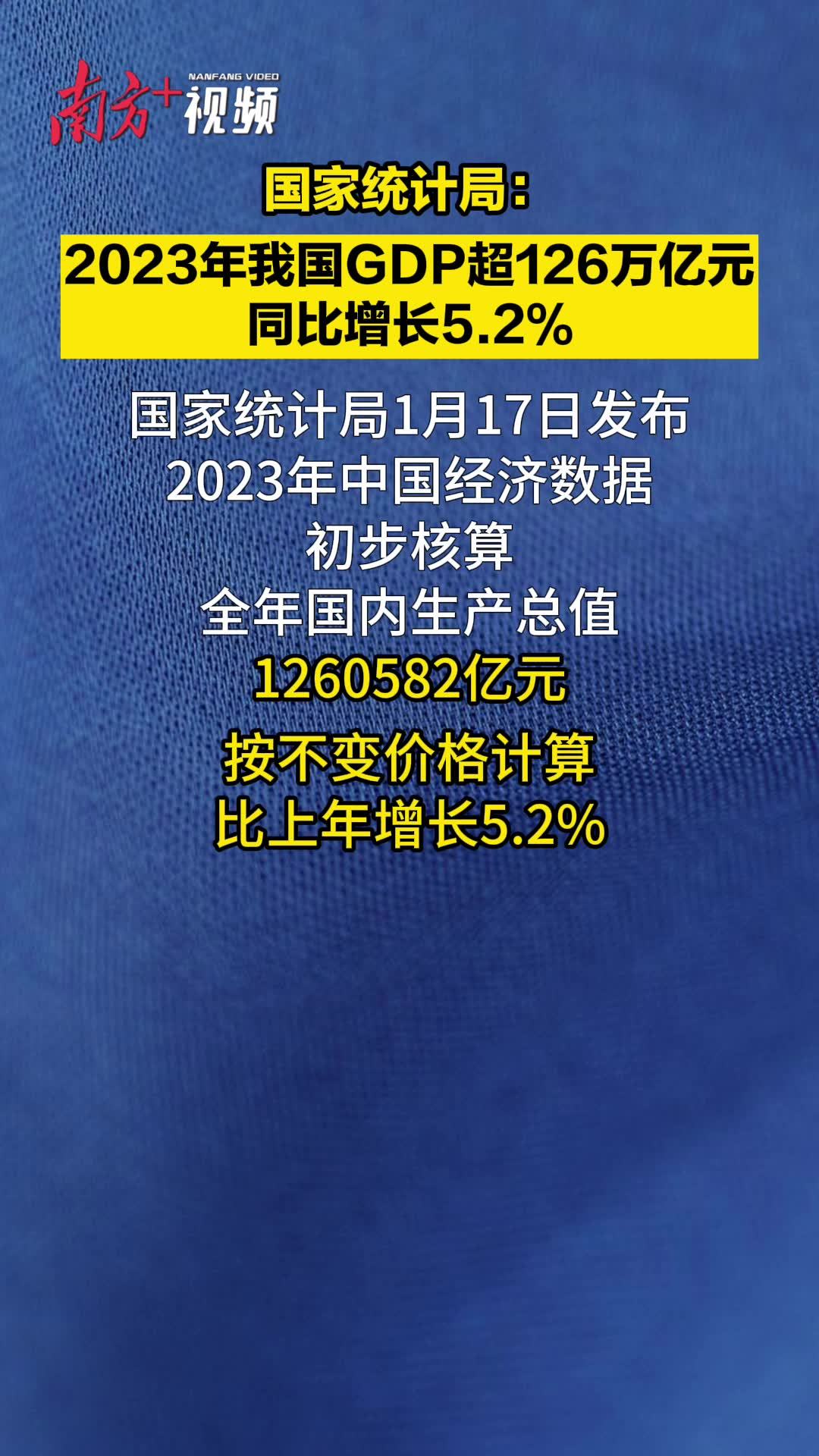 2023年中国GDP超126万亿元,同比增长5.2%