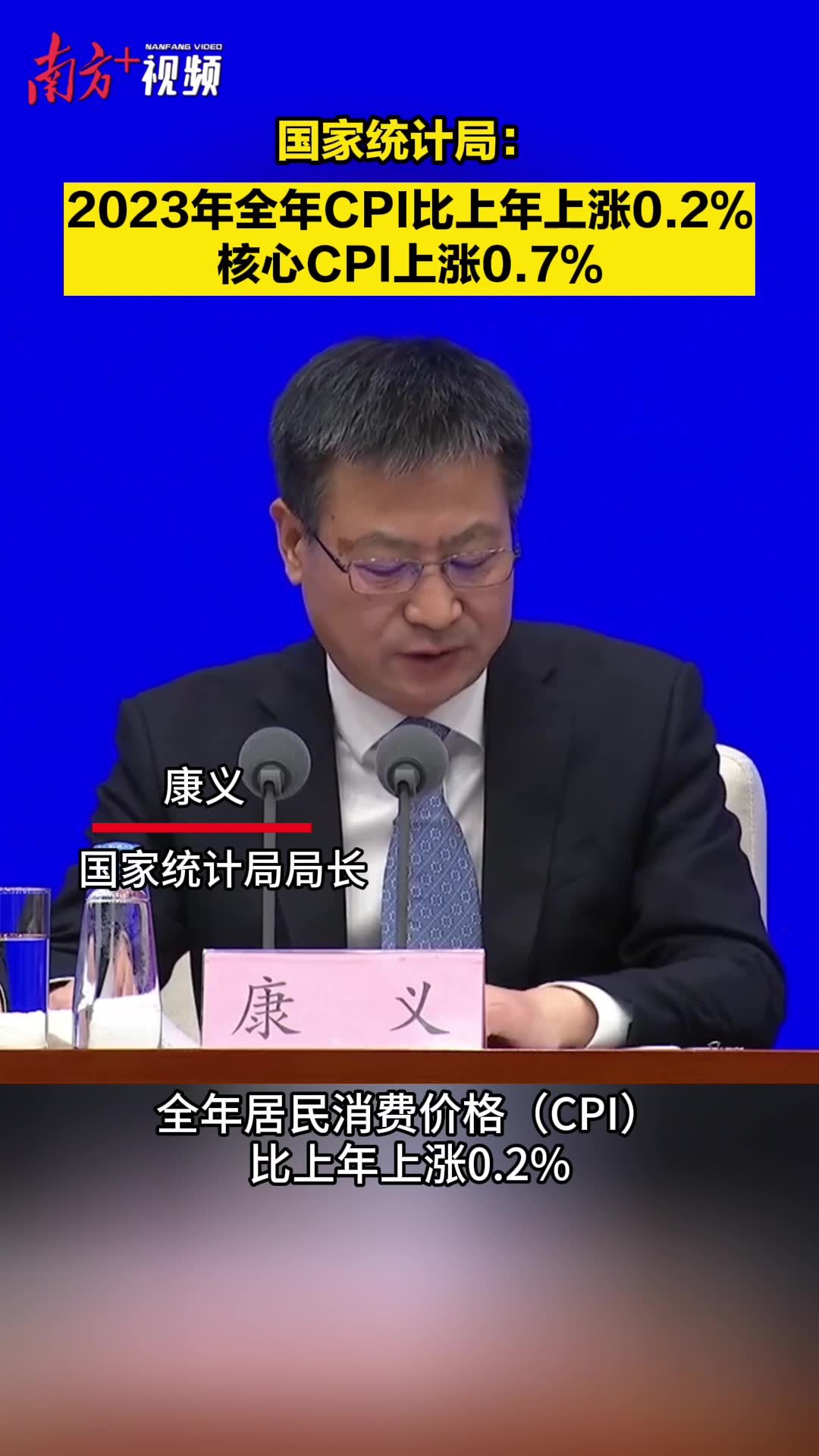 国家统计局:2023全年CPI比上年上涨0.2%,核心CPI上涨0.7%