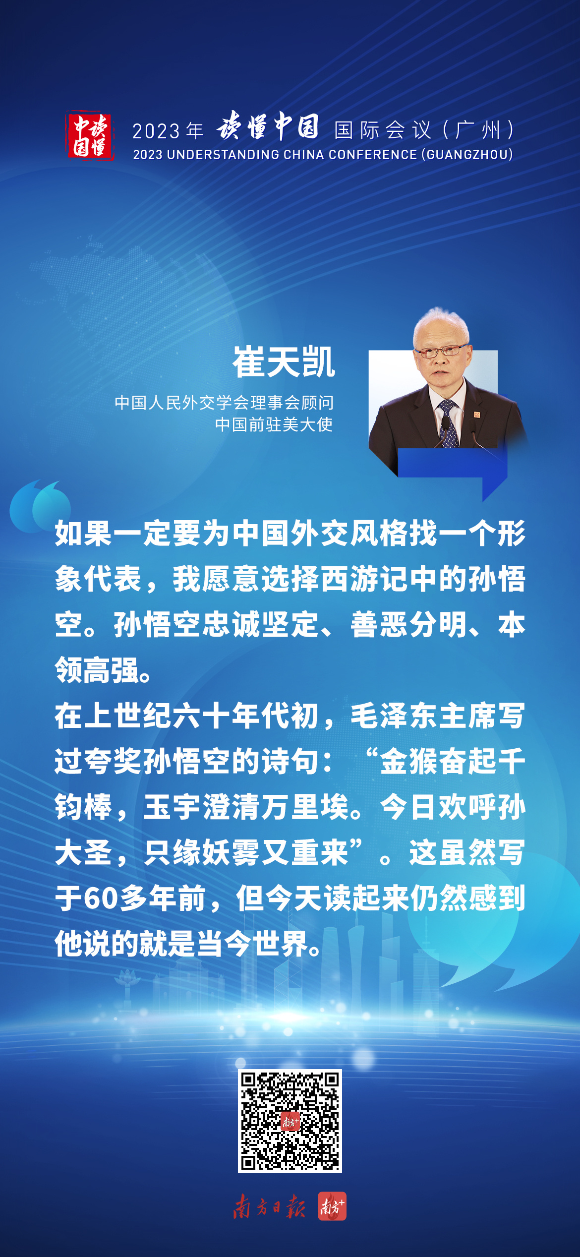 在午餐演讲环节,香港中文大学(深圳)前海国际事务研究院院长、广州粤港澳大湾区研究院理事长郑永年与中国人民外交学会理事会顾问、中国前驻美大使崔天凯进行了一场精彩对话。详情>>>