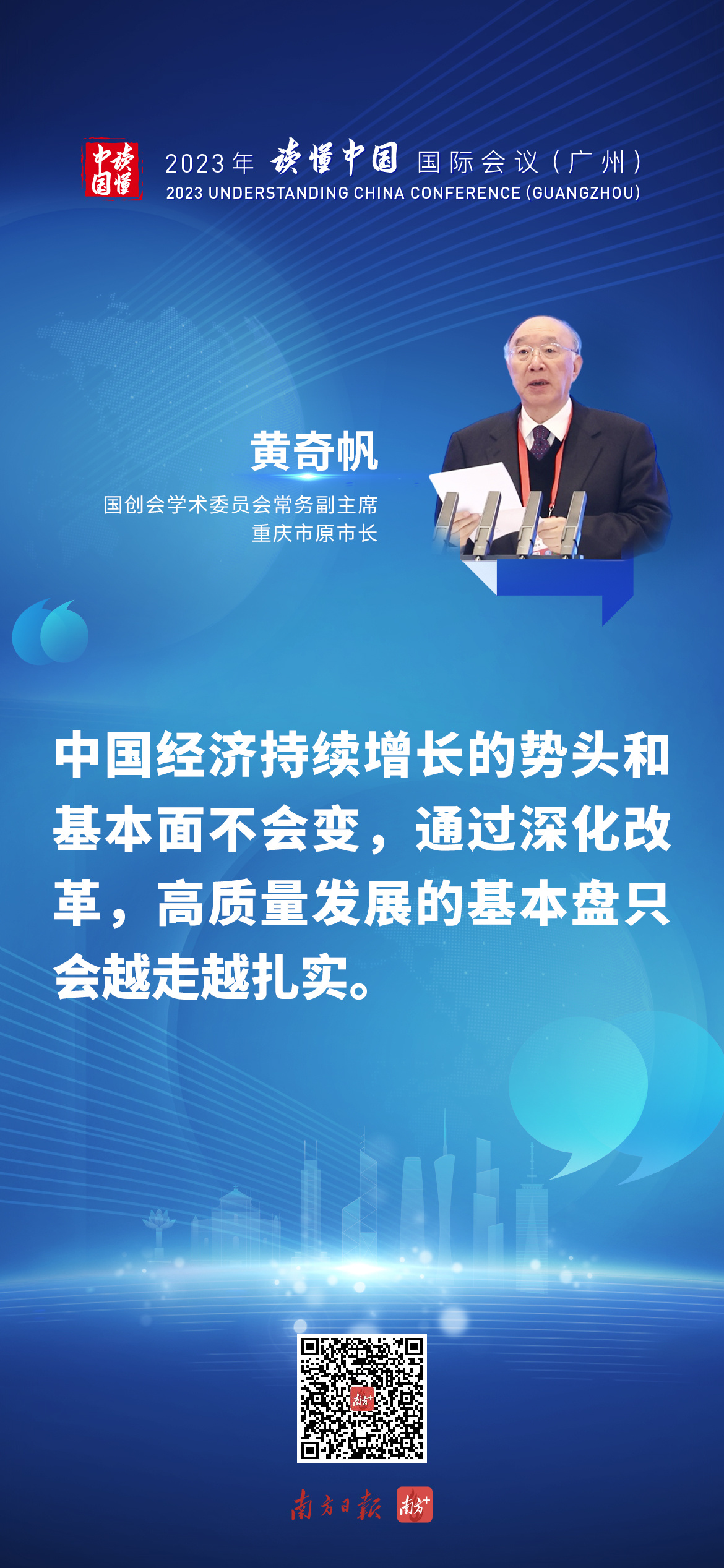 黄奇帆:中国经济持续增长 的势头和基本面不会变