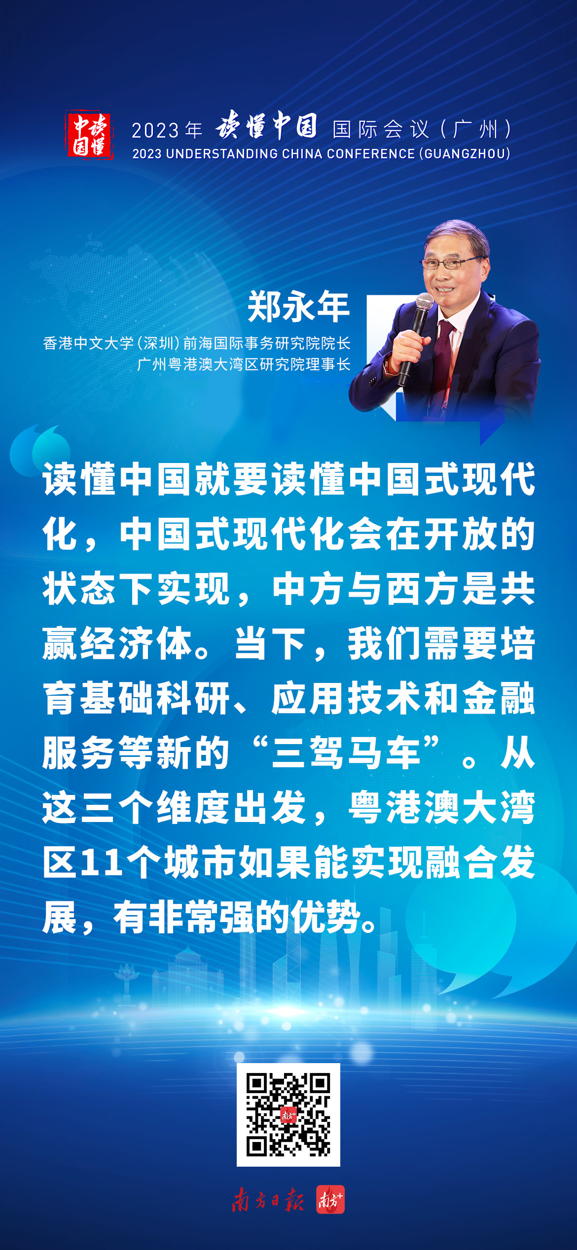 香港中文大学(深圳)前海国际事务研究院院长、广州粤港澳大湾区研究院理事长郑永年在接受南方+等记者采访时表示,读懂中国就要读懂中国式现代化,中国式现代化会在开放的状态下实现,中方与西方是共赢经济体。详情>>>