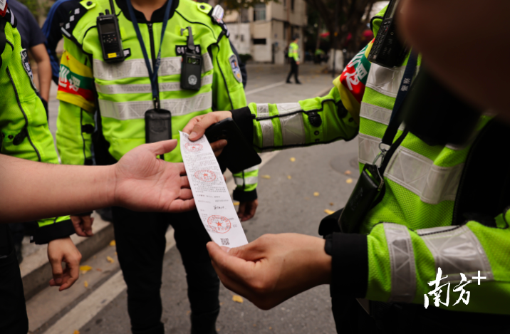 交警开出罚单。