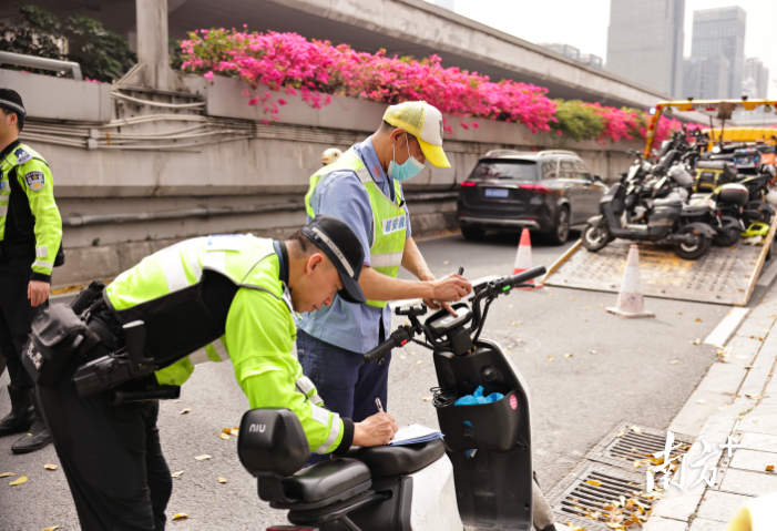 广州交警严查涉“电鸡”重点违法行为。