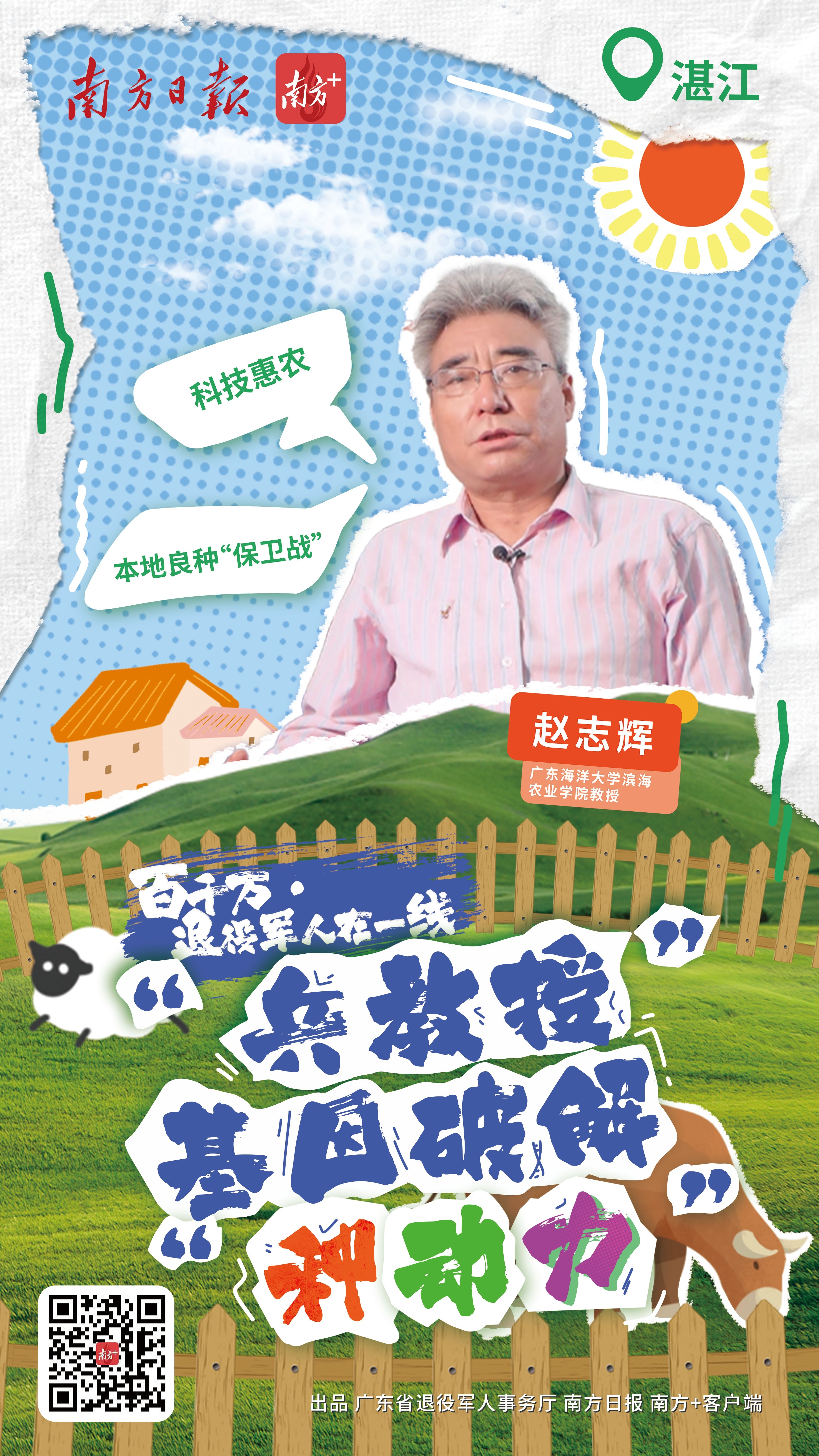 他当兵21年、从事动物遗传育种与繁殖专业30余年,走到农民中间,却成了笑嘻嘻的“老大哥”。他听不懂雷州话,却能让当地农民爱上门找他“唠家常”。他就是广东海洋大学滨海农业学院教授、博士生导师赵志辉。