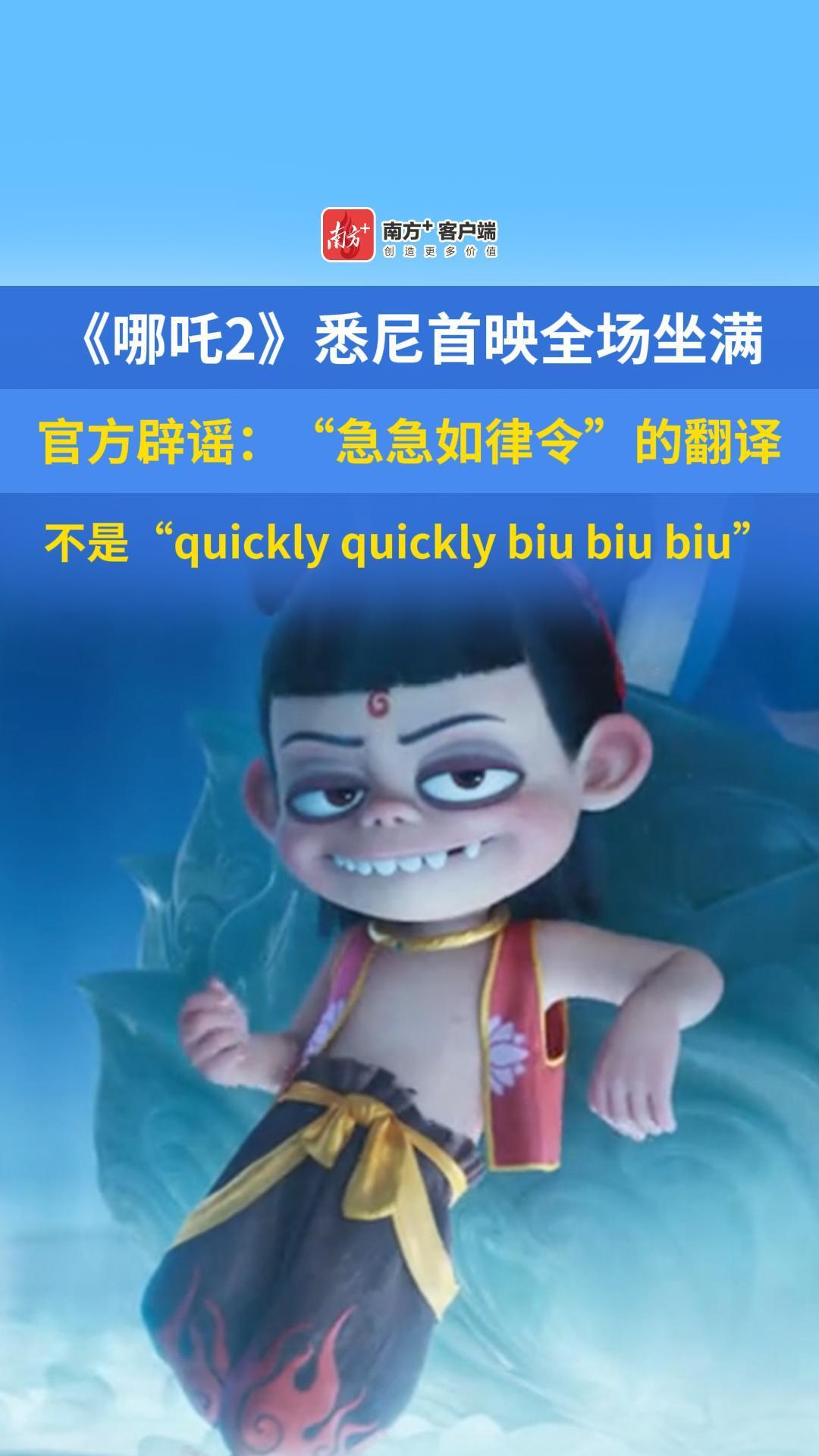近日,《哪吒2》在海外逐步上映。有媒体报道称,在海外版中,台词“急急如律令”被翻译为“quickly quickly biu biu biu”。2月10日,记者从影片海外发行商华人影业工作人员处获悉,翻译成“biubiubiu”的消息是假的。详情>>