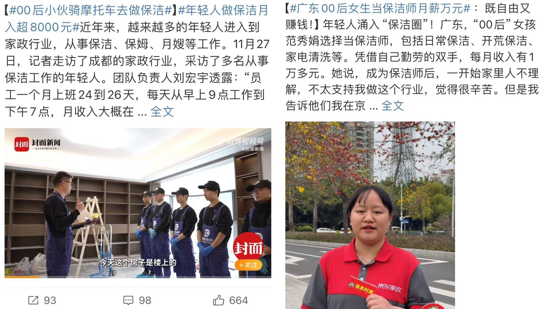 保洁,曾被视为“体力活”的代名词,如今在社交媒体上却频频与“年轻人”“高薪”挂钩。在深圳,越来越多的年轻人,包括不少高学历者,也开始选择投身家政保洁行业。