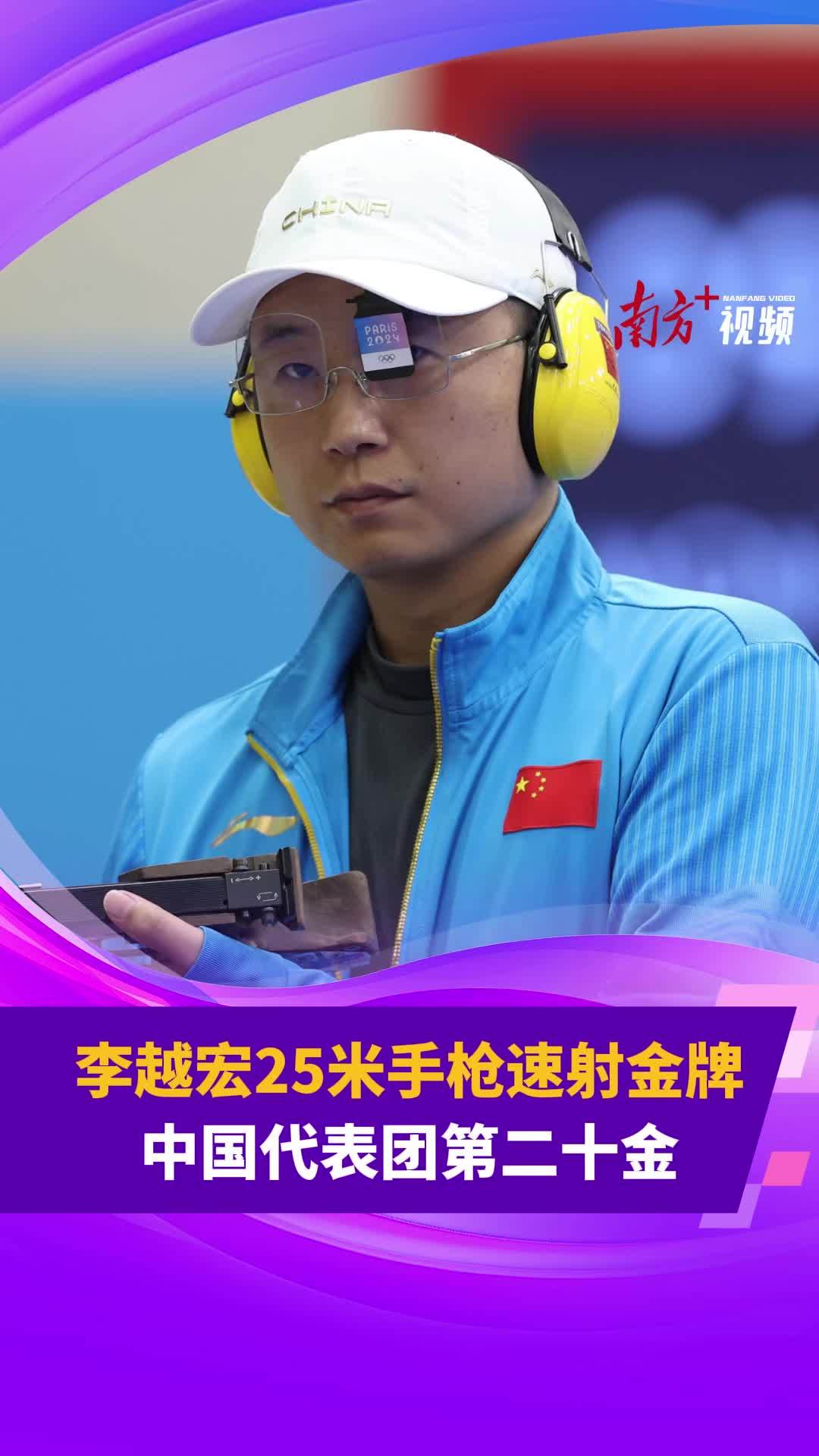 第20金!李越宏25米手枪速射夺冠,射击队金牌数超越东京奥运