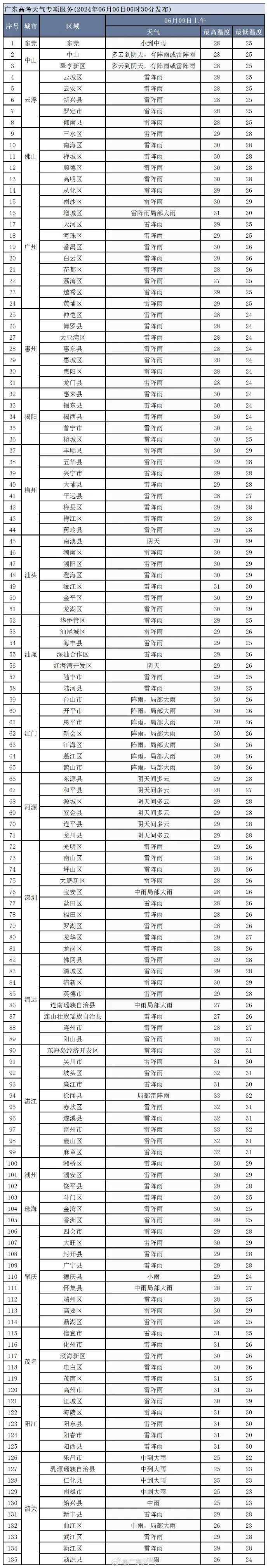 2024年广东考场天气预报