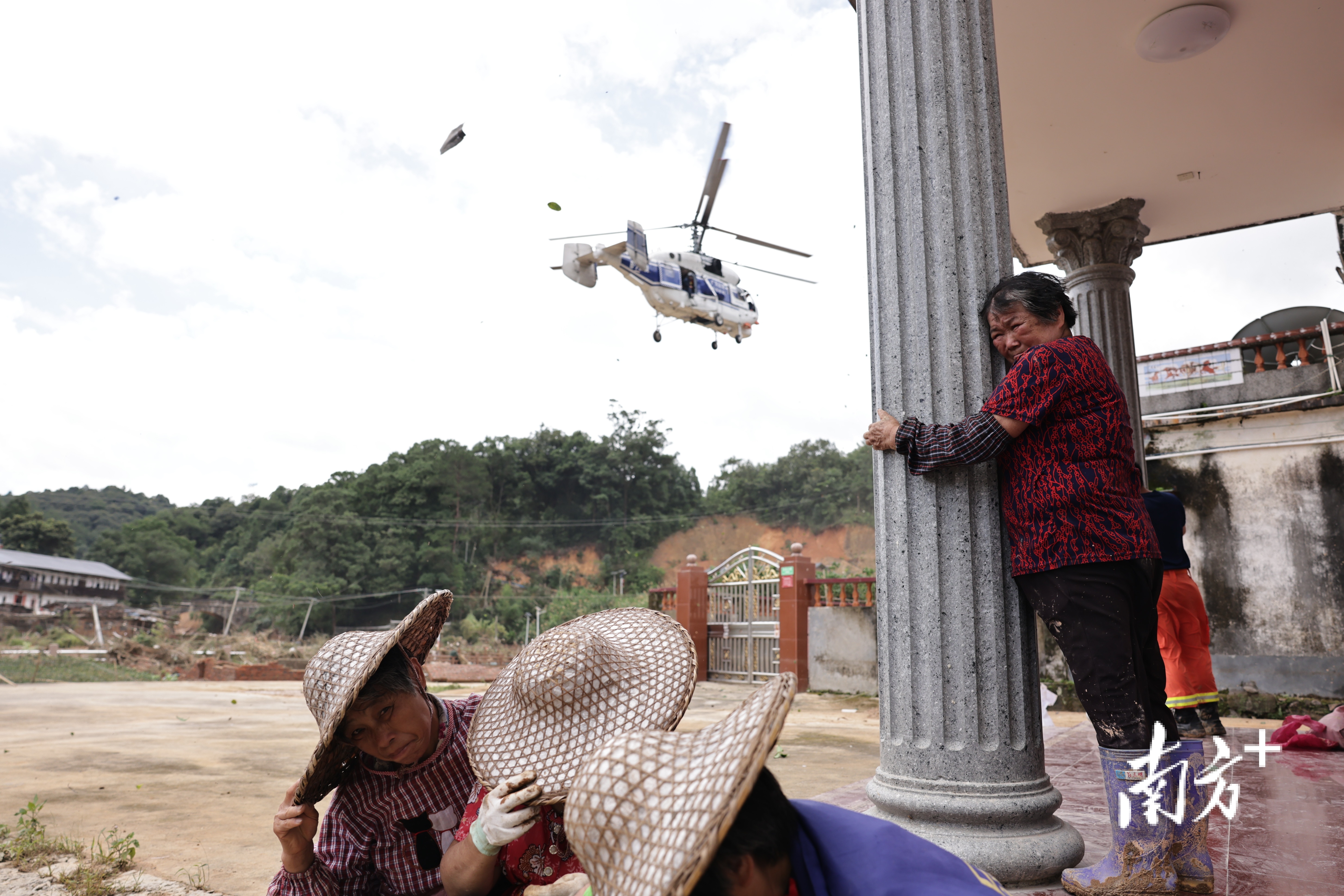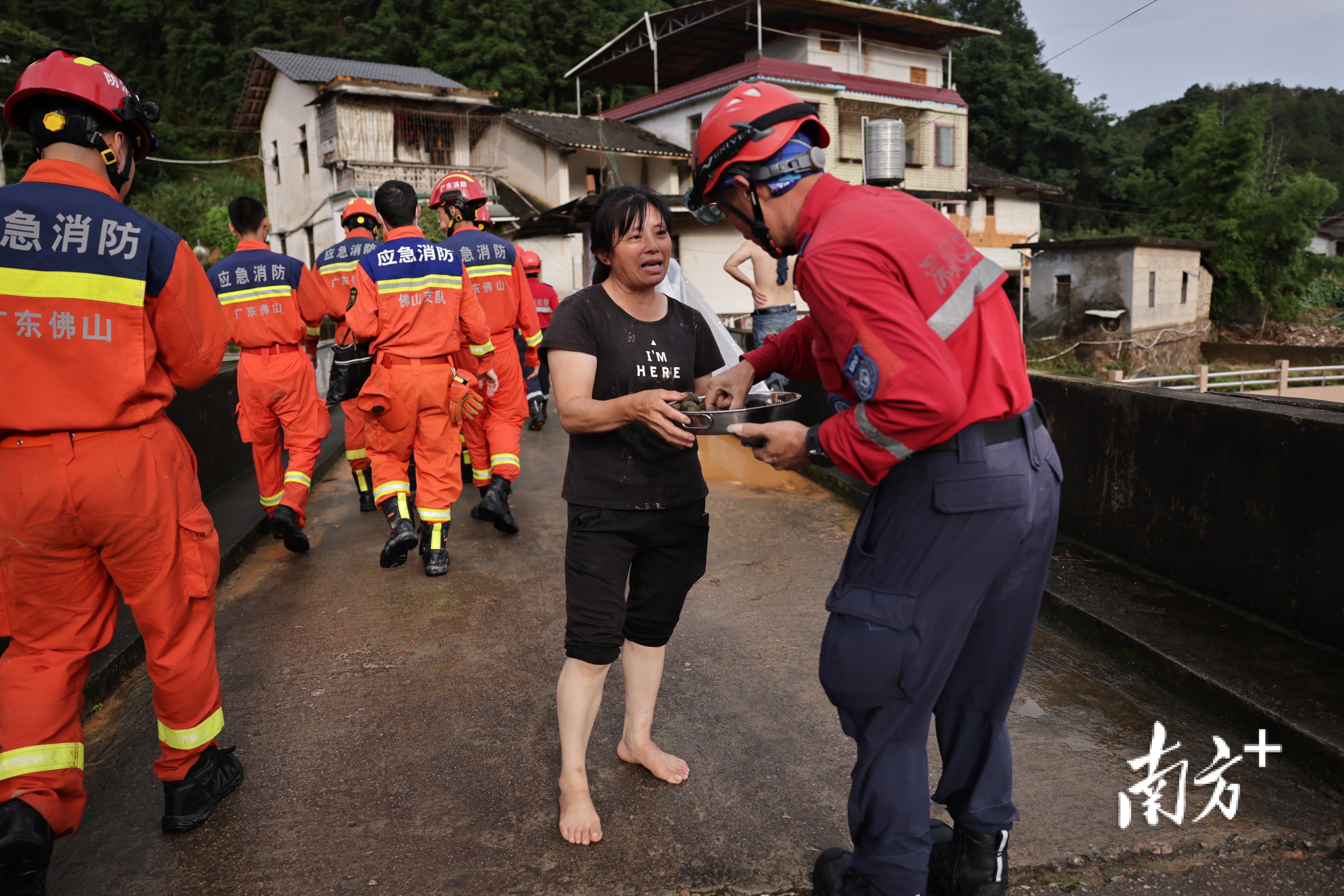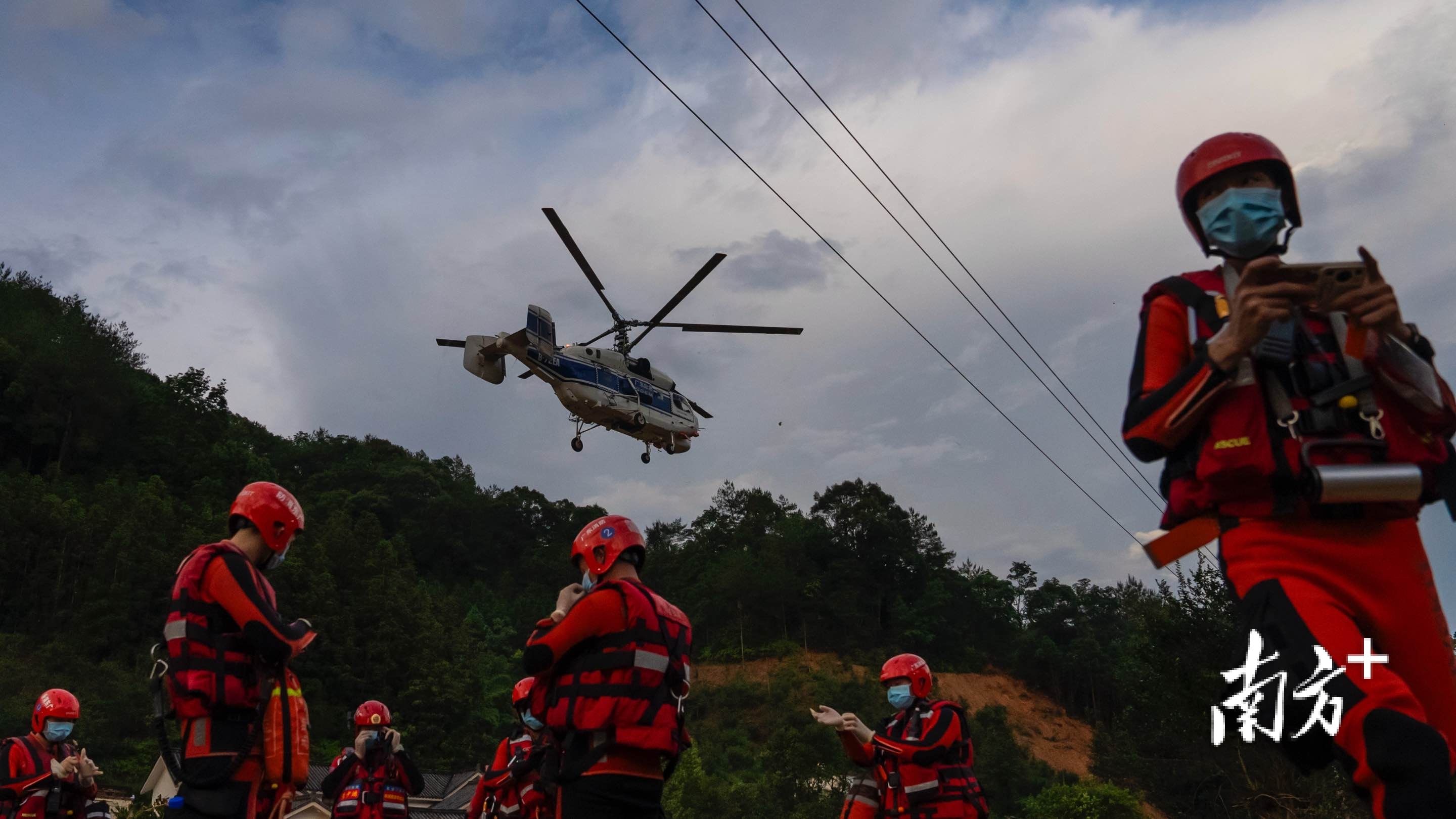 灾难当前,救援争分夺秒。由河源前来支援的消防救援力量搭乘直升机进入泗水大新村,救援人员和物资第一时间被空投至灾区;由佛山前来支援的消防救援队员们第一时间进入蕉岭多宝村,在村内坍塌房屋中搜寻被困群众;南磜镇的应急救援队伍发现兄弟村镇蓝旗镇失联,打通援助道路,在废墟中救出被困超过47小时的女子。