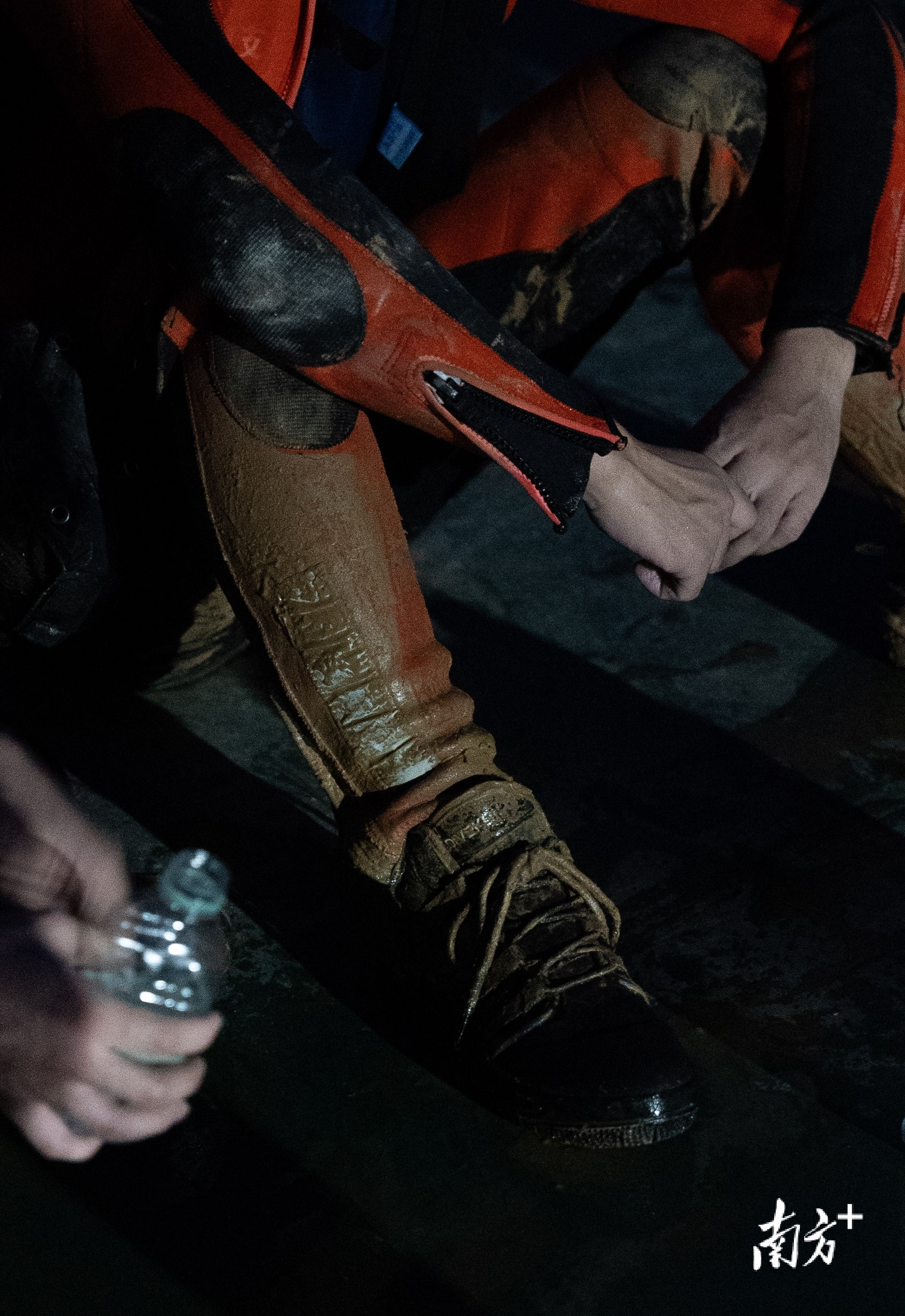 6月17日晚,梅州平远县大新村内,刚结束搜寻工作的消防救援人员身上处处是淤泥。