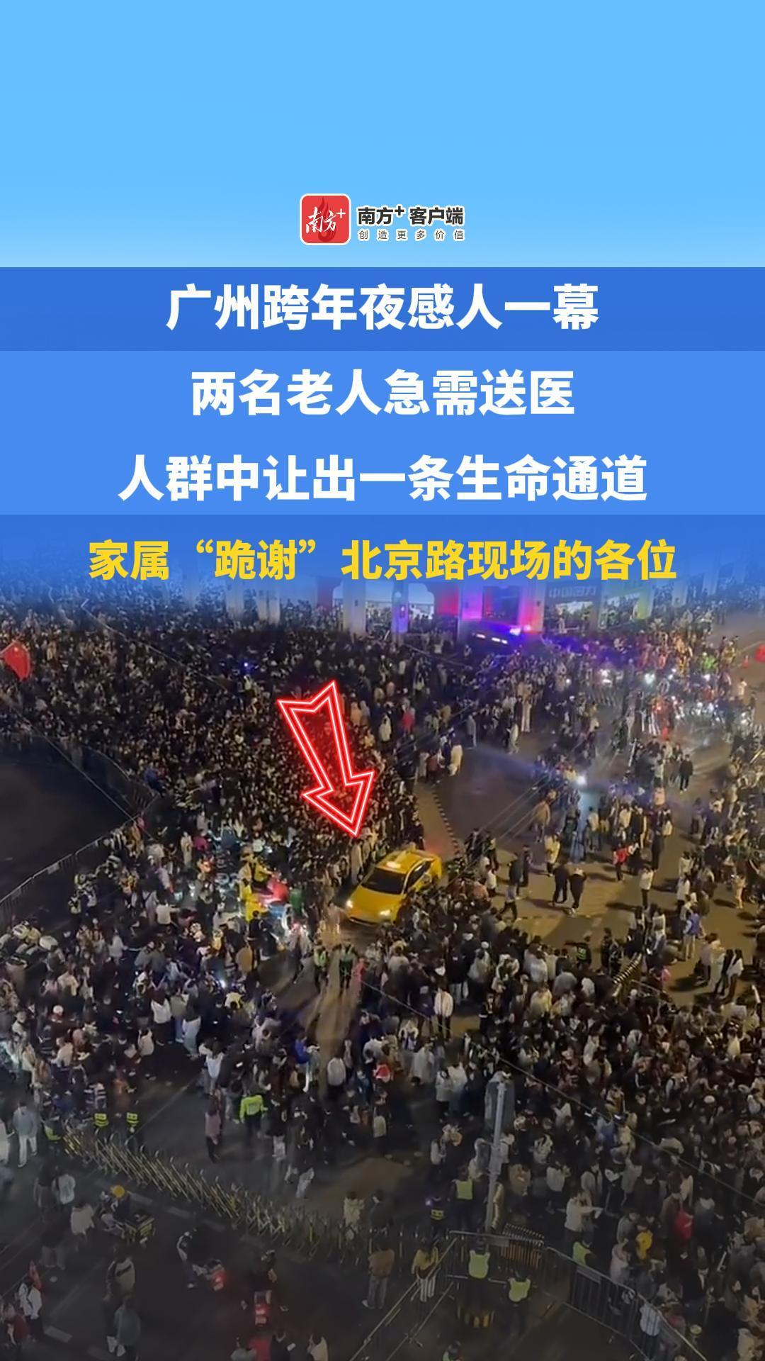 广州跨年夜感人一幕,两名老人急需送医,人群中让出一条生命通道,家属“跪谢”北京路现场的各位