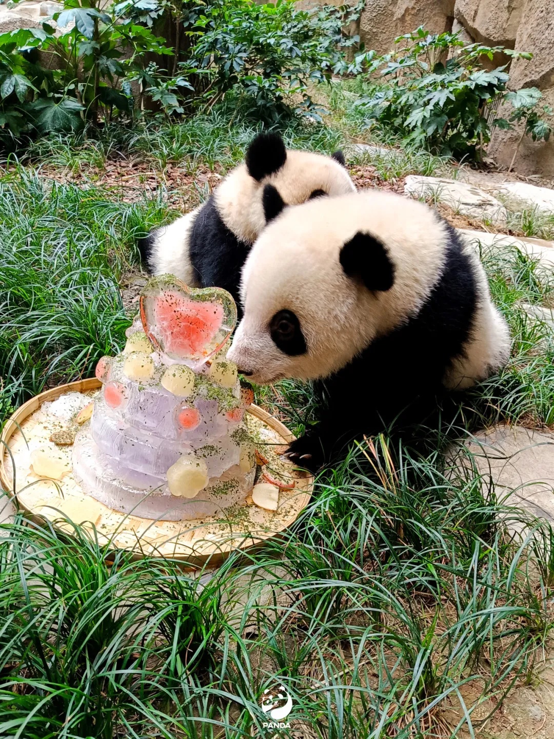 一周岁生日时,两姐妹一起在成都大熊猫繁育研究基地过了生日。