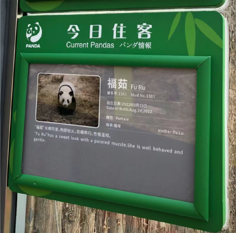 公开资料显示,大熊猫福茹,雌性,2022年8月29日出生在成都大熊猫繁育研究基地月亮产房,母亲是大熊猫福禄,姐姐是福双、福菀。来自熊丁兴旺的“英英家族”,外婆瑛华,外公白杨,舅舅福星(胖大海)。