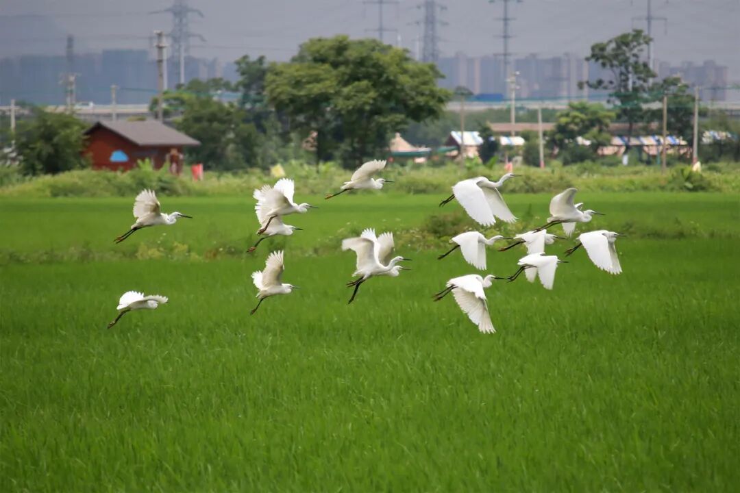 ▲万亩稻田白鹭翩飞。曾锦峰摄
