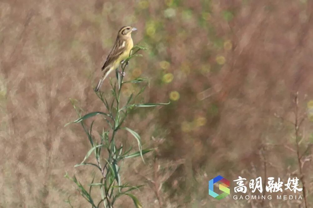 ▲栖息在稻田旁湿地草丛里的黄胸鹀。曾锦峰摄