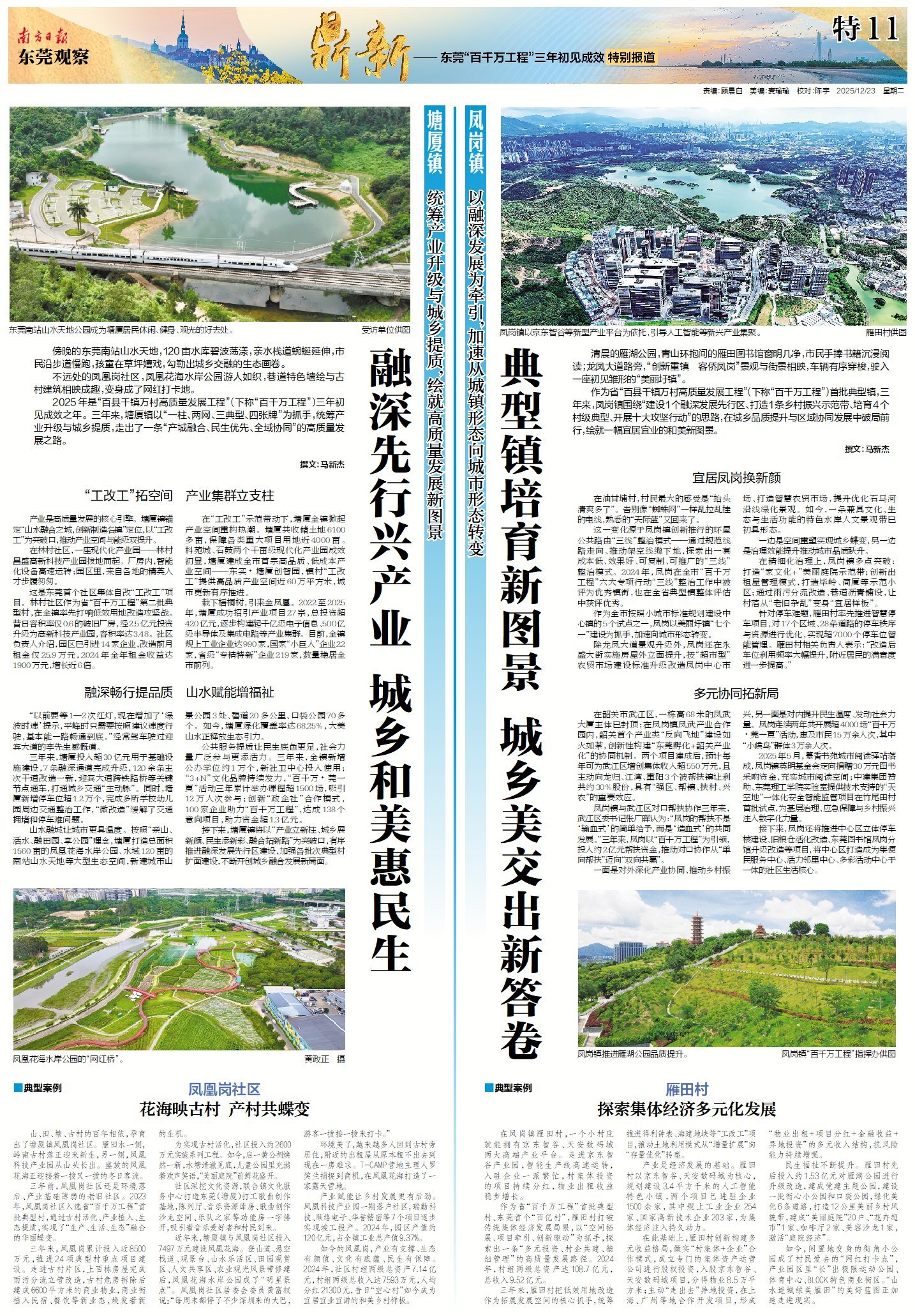 作为省“百县千镇万村高质量发展工程”(下称“百千万工程”)首批典型镇,三年来,凤岗镇围绕“建设1个融深发展先行区、打造1条乡村振兴示范带、培育4个村级典型、开展十大攻坚行动”的思路,在城乡品质提升与区域协同发展中破局前行,绘就一幅宜居宜业的和美新图景。