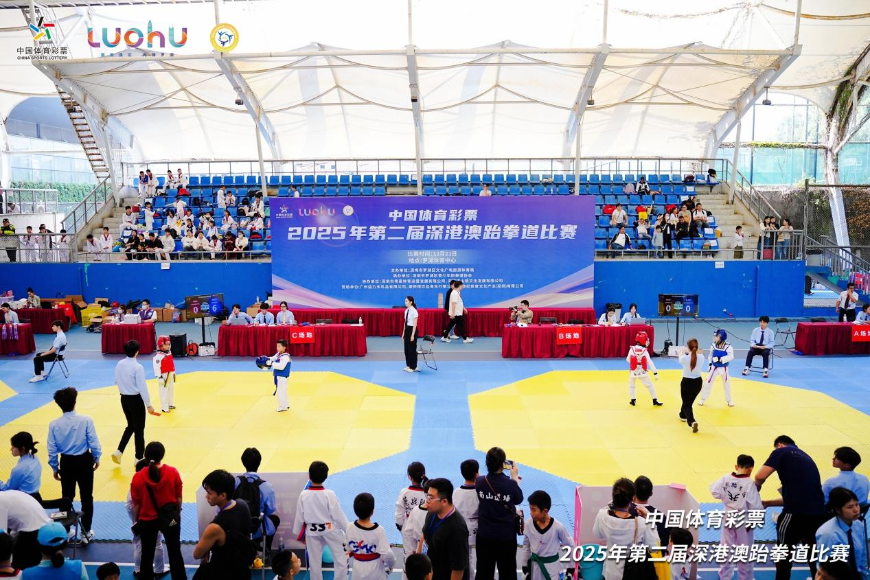 12月21日,2025年第二届深港澳跆拳道比赛在深圳罗湖体育馆中心网球场落幕,来自深圳、香港、澳门三地的多支代表队,超过500名运动员踊跃参与。