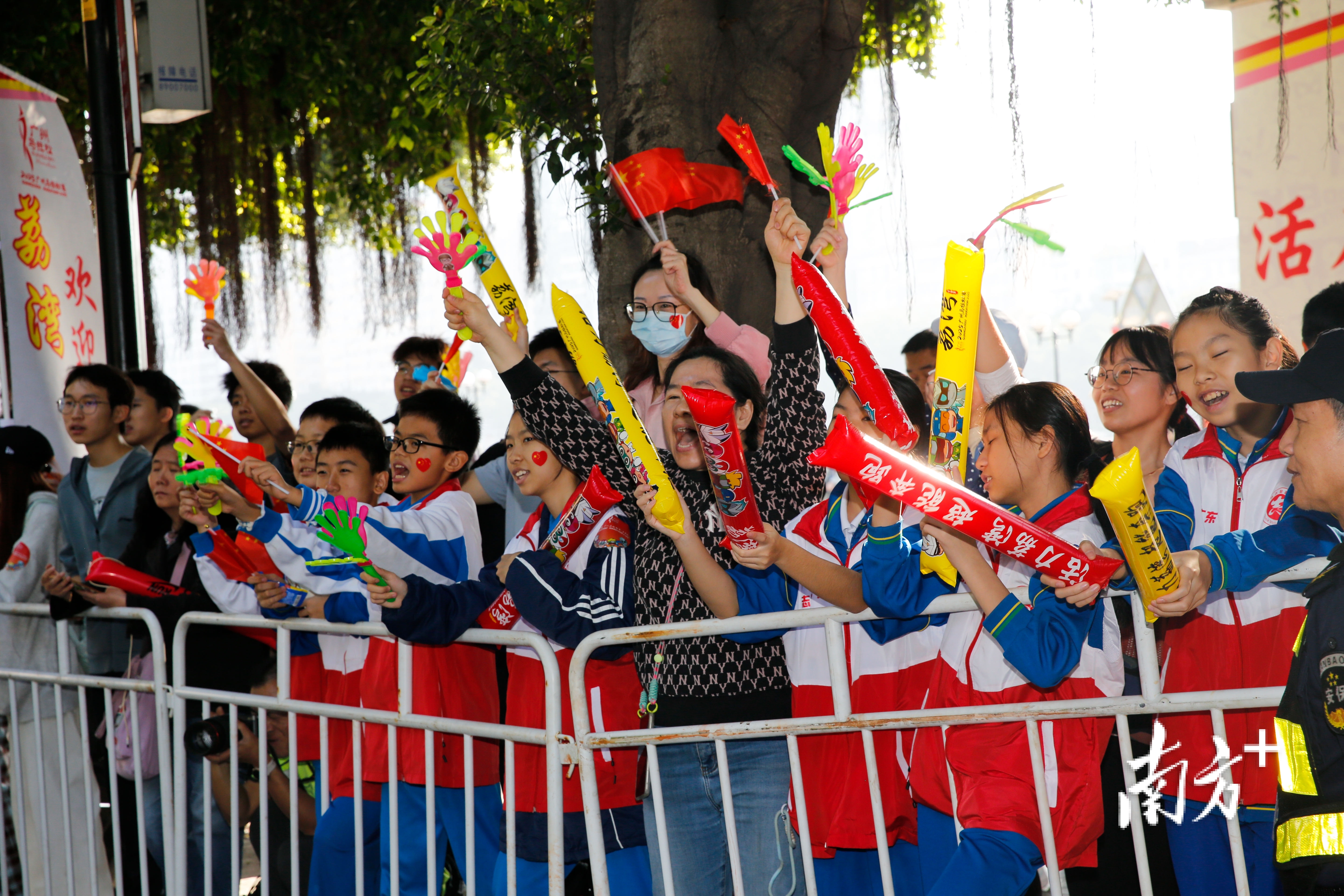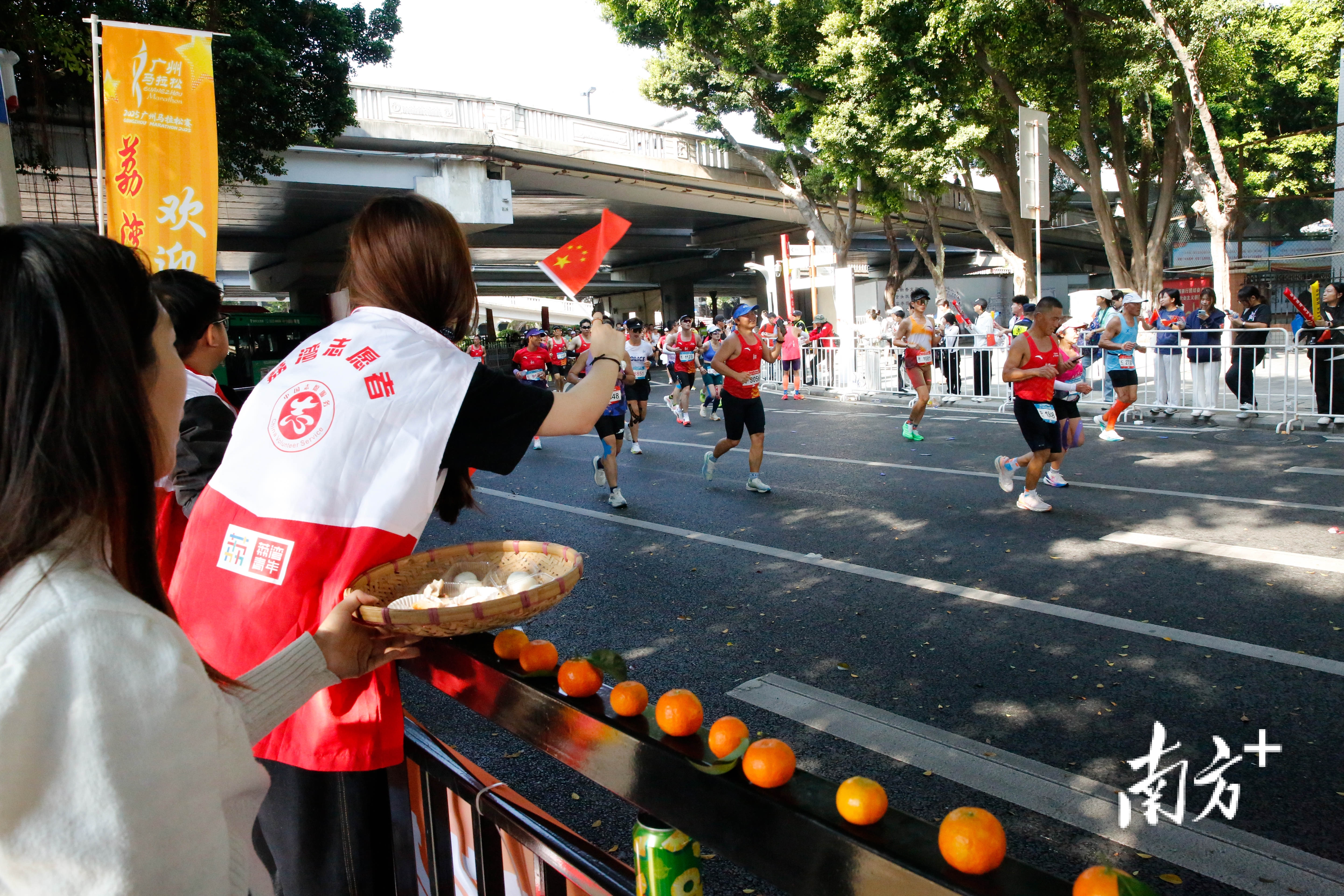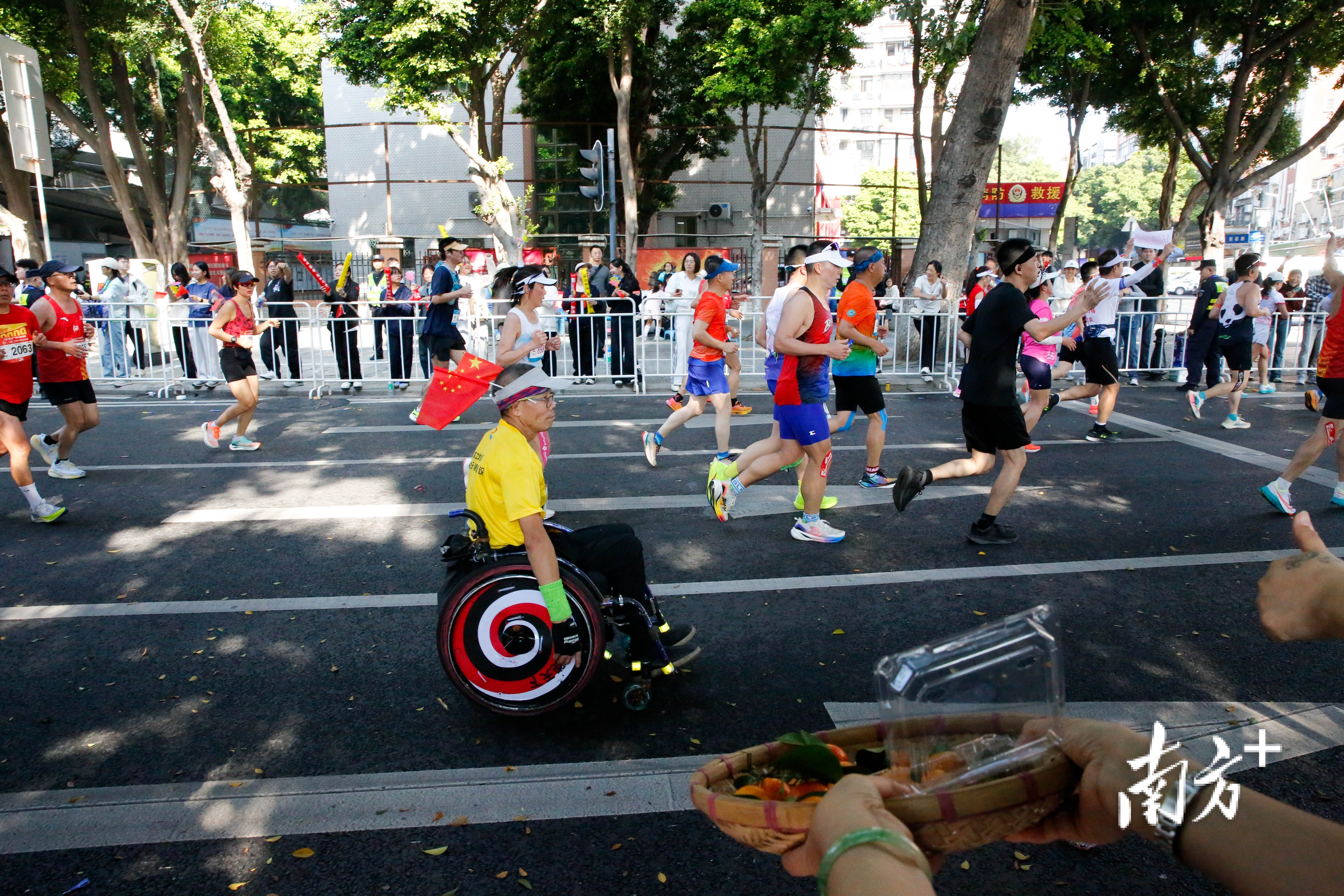 赛道两旁,身披统一标识的志愿者以最灿烂的笑容与响亮的加油,提供着及时补给与暖心鼓励;可爱的少儿粤剧表演者挥动水袖,以稚嫩却认真的演绎致敬奔跑的毅力;激昂的锣鼓催动醒狮矫健腾跃,为赛道注入磅礴动力;朝气蓬勃的少儿篮球表演,跃动着青春的活力。