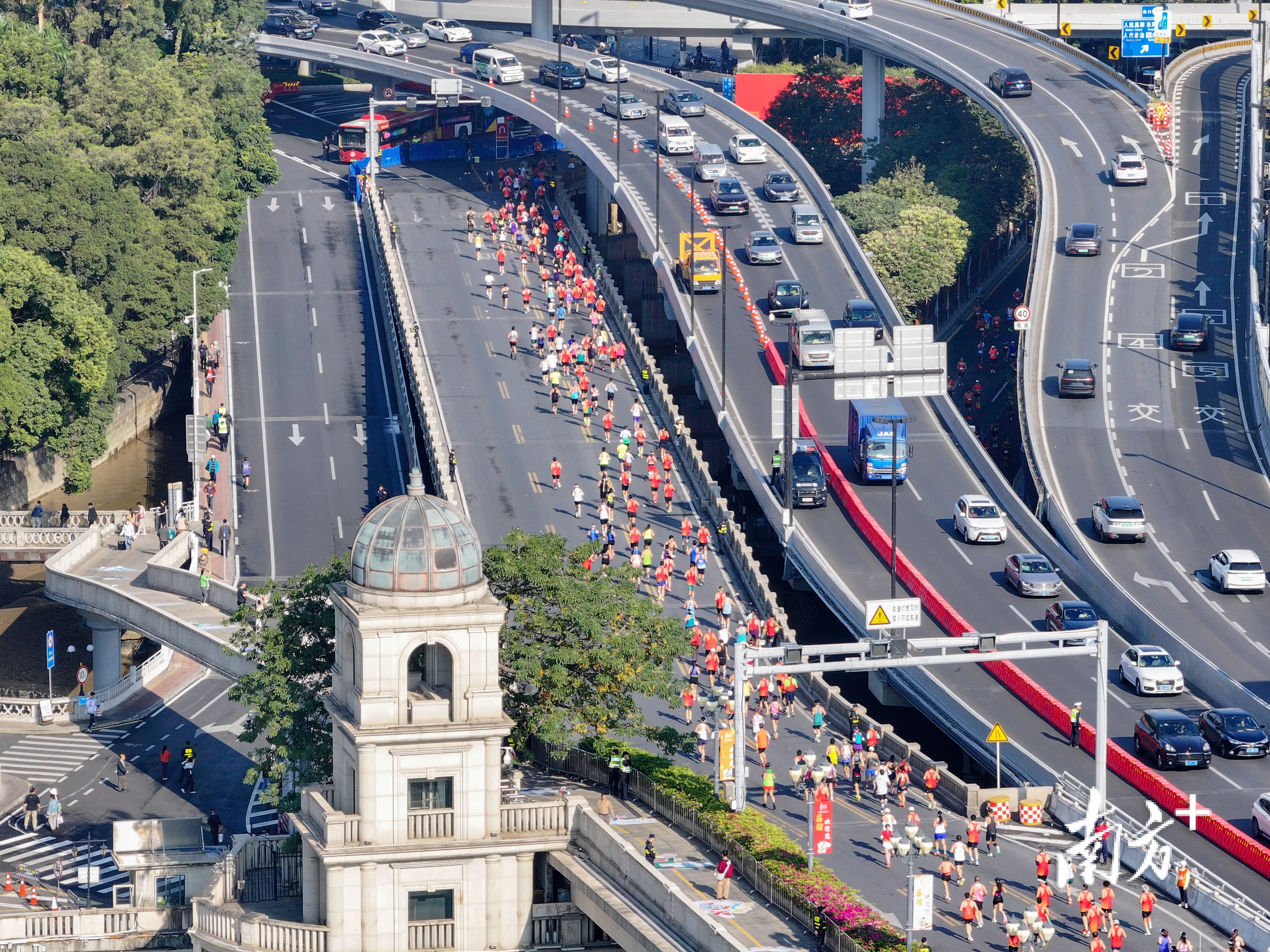 此段路线自人民桥北行而下,经六二三路转折,沿沿江西路东行,全程虽仅约1公里,却堪称一座微缩的“城市人文博览馆”。为助力跑者在此关键节点成功突破体能“撞墙期”,荔湾区今年以“动漫文旅+城市会客厅”为创新理念,将赛道悉心打造为一条“可奔跑、可欣赏、可互动”的风景赛道,让跑者在步履不停间,深度感受荔湾的用心与创意。
