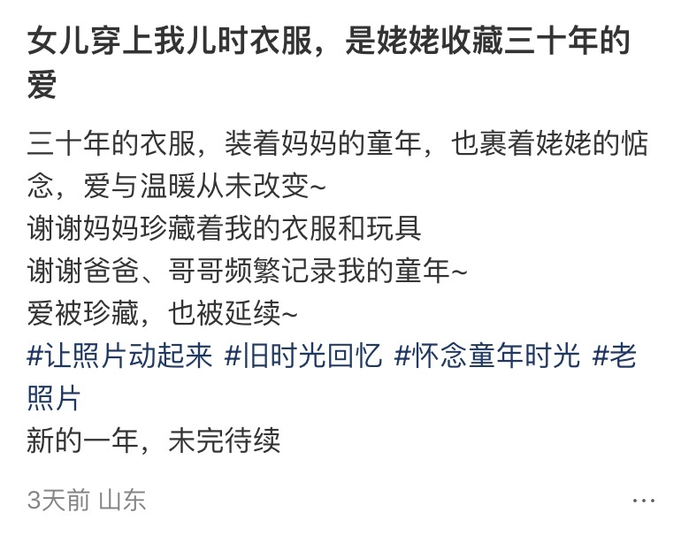 “每次看到都会想起小时候的自己~”