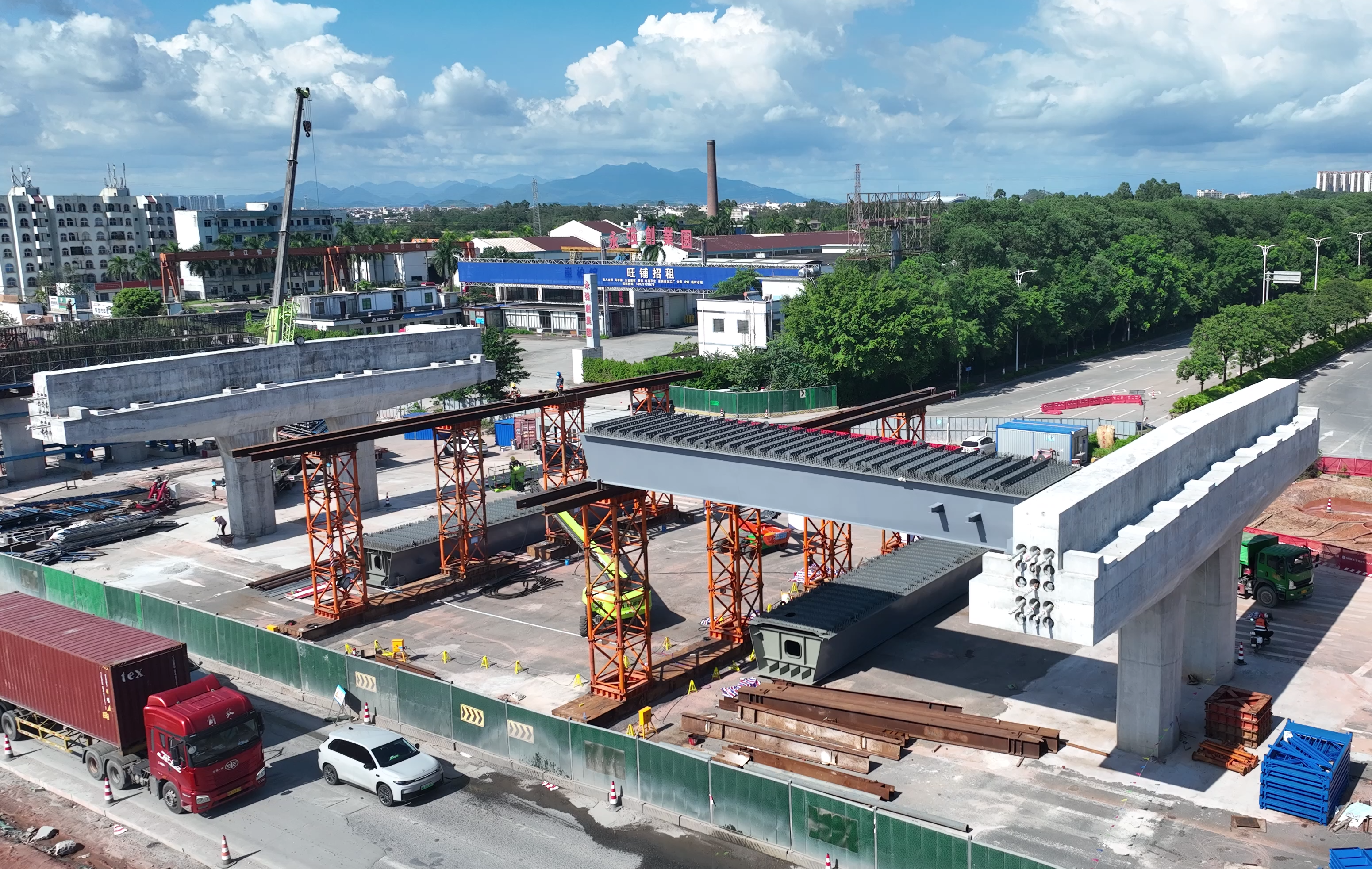 近日,省道S280线(茂名大道)快速化改造(一期)工程迎来关键节点——市民大道立交项目成功完成首段钢箱梁吊装,为项目后续推进奠定重要基础。