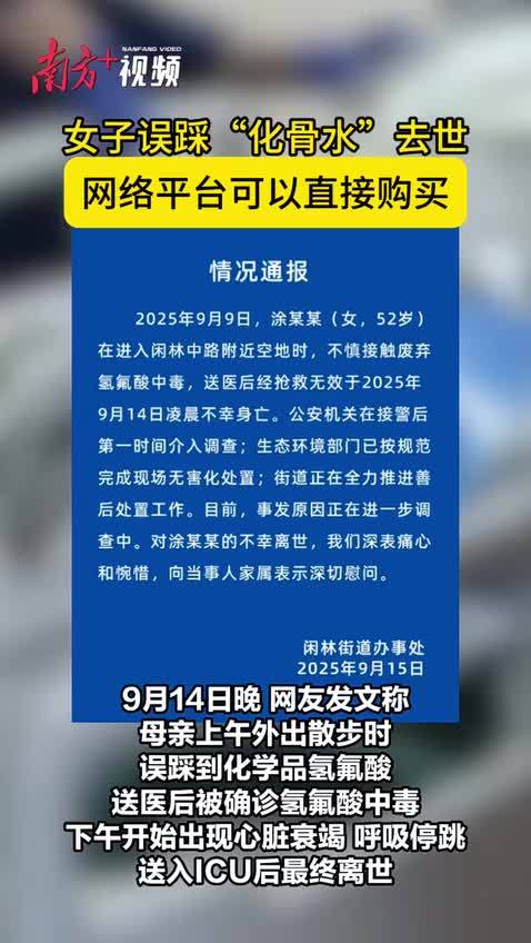 女子散步误踩氢氟酸后去世,多个电商平台仍可直接网购
