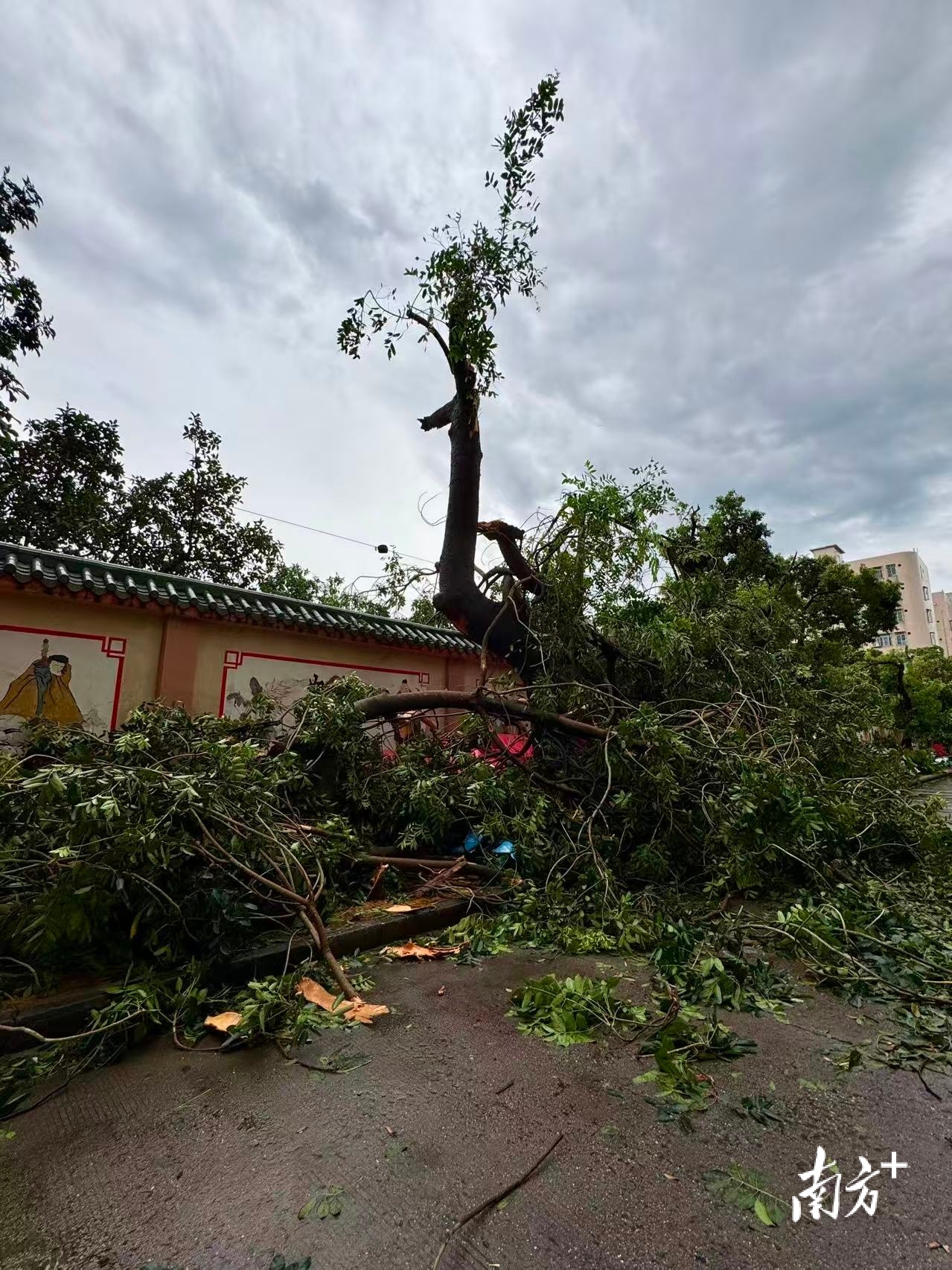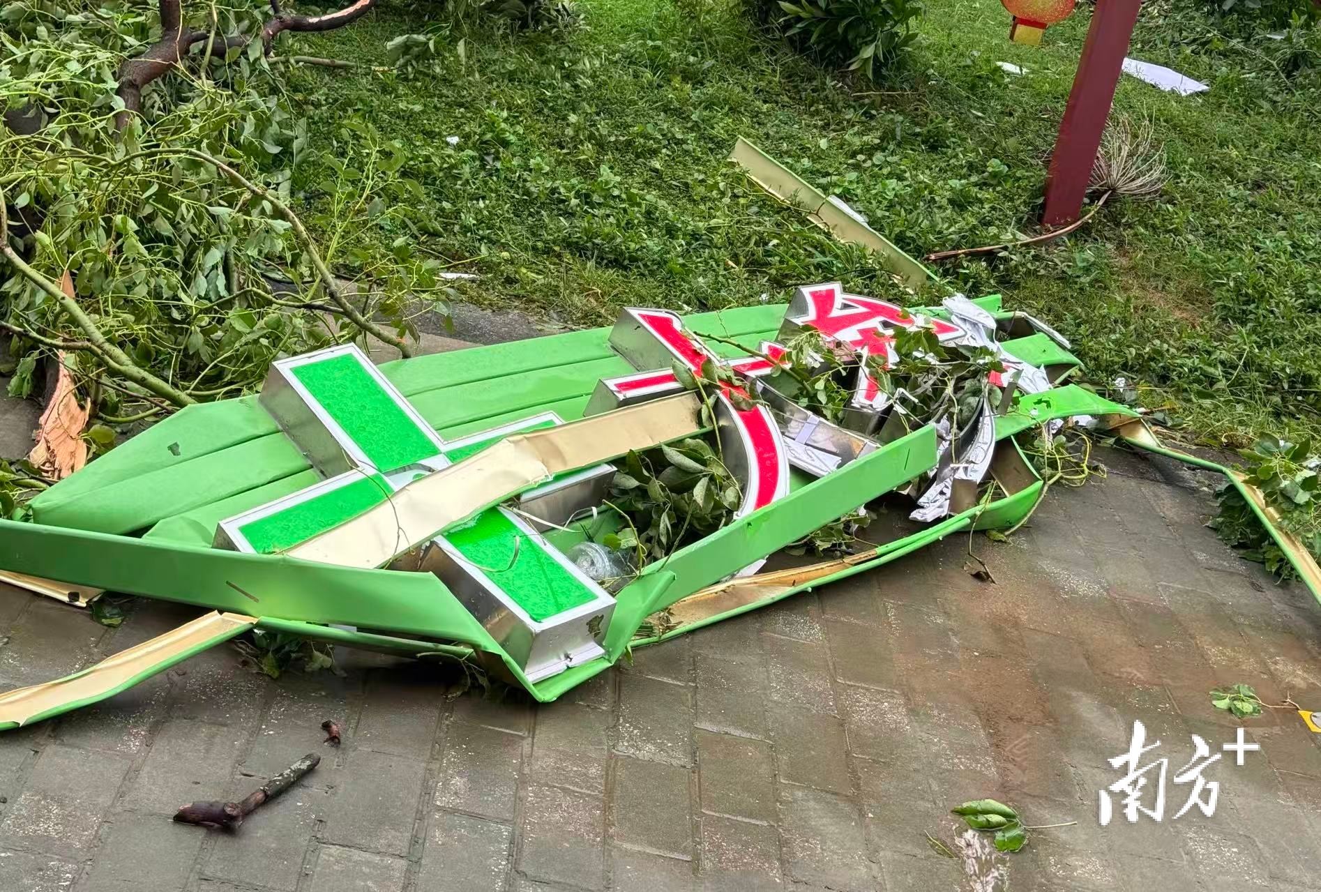 6日清晨,街道上随处可见倒伏的树木,有的大树甚至被连根拔起。部分路边停放的车辆玻璃破损,满目狼藉诉说着台风的威力。有工作人员将被吹走的招牌重新整理,从杂乱的树枝堆中搬出来。
