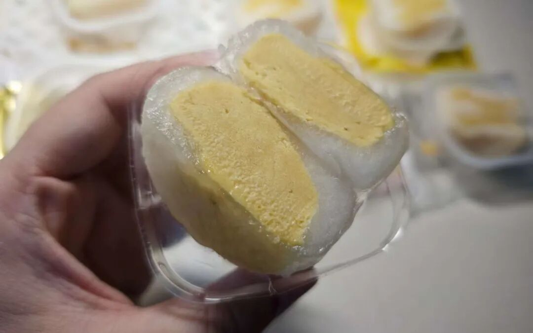 另据王先生了解,上述低价榴莲味冰皮月饼中添加的榴莲酱、榴莲味馅料,很多是用榴莲碎肉加入冻干粉等配料调制而成。还有一种榴莲味酱料中没有榴莲,实质是用香蕉、榴莲香精等原料调制而成。