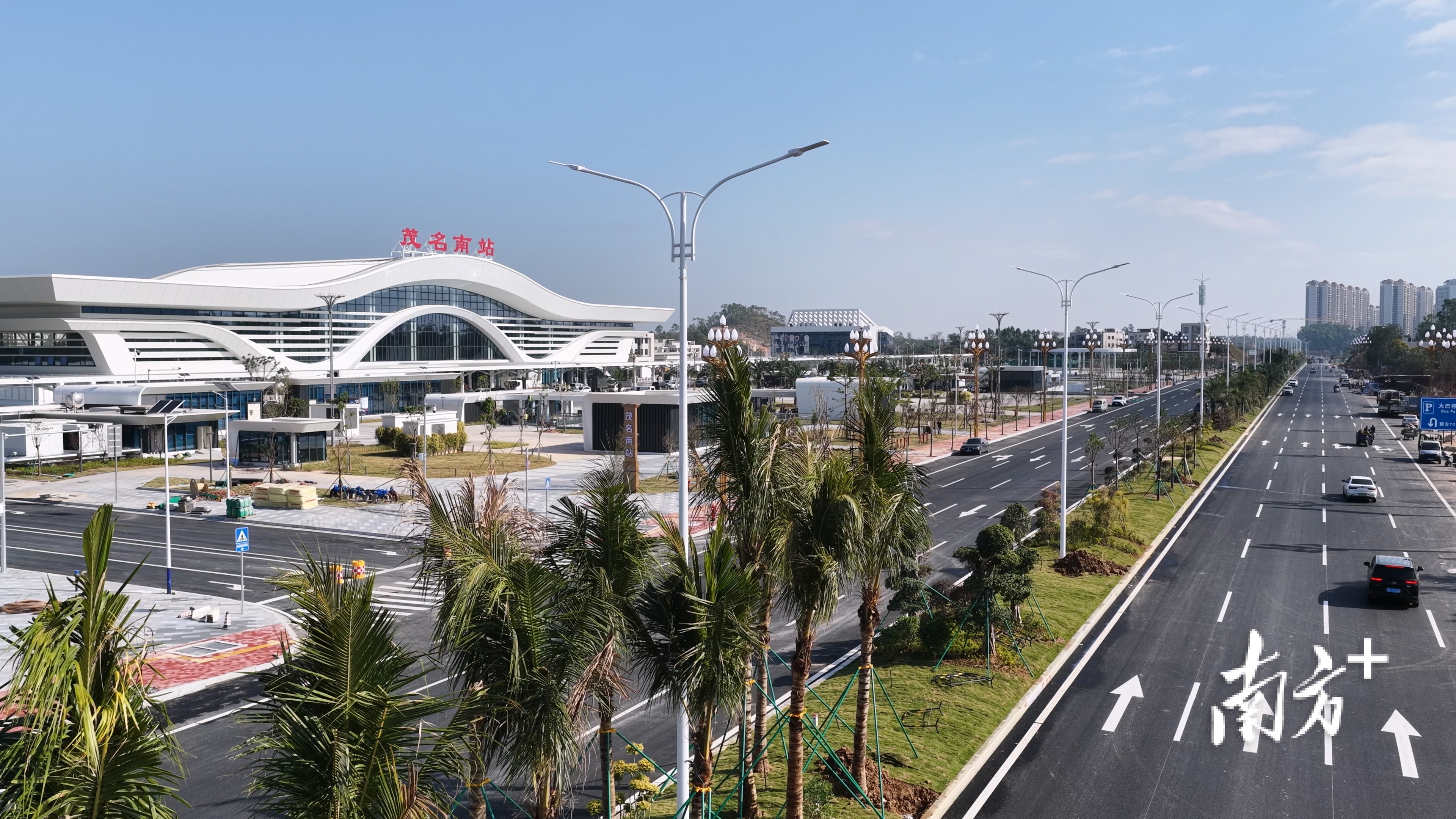 茂名南站及周边道路作为新城对外展示的重要界面,市交投集团紧盯工期、高效推进,多轮绿化作业快速落地,累计种植椰子树、秋枫、火焰木等乔木16类1854棵、灌木13类536棵及多类地被植物,构建层次丰富、色彩多样、景观优美的道路绿化生态体系。