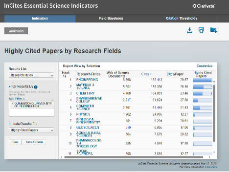 3月12日,基本科学指标数据库(Essential Science Indicators,以下简称“ESI”)最新数据显示,广东工业大学化学(Chemistry)跻身ESI全球排名前1‰。