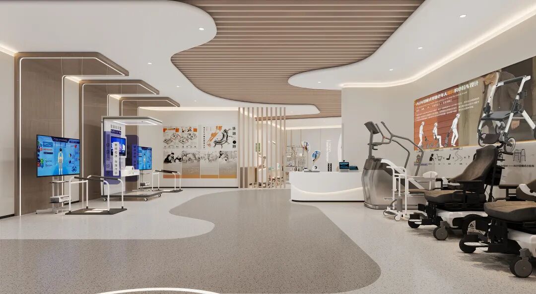 一层银龄探索馆:可以体验智能护理床、防滑地板、适老化家具。