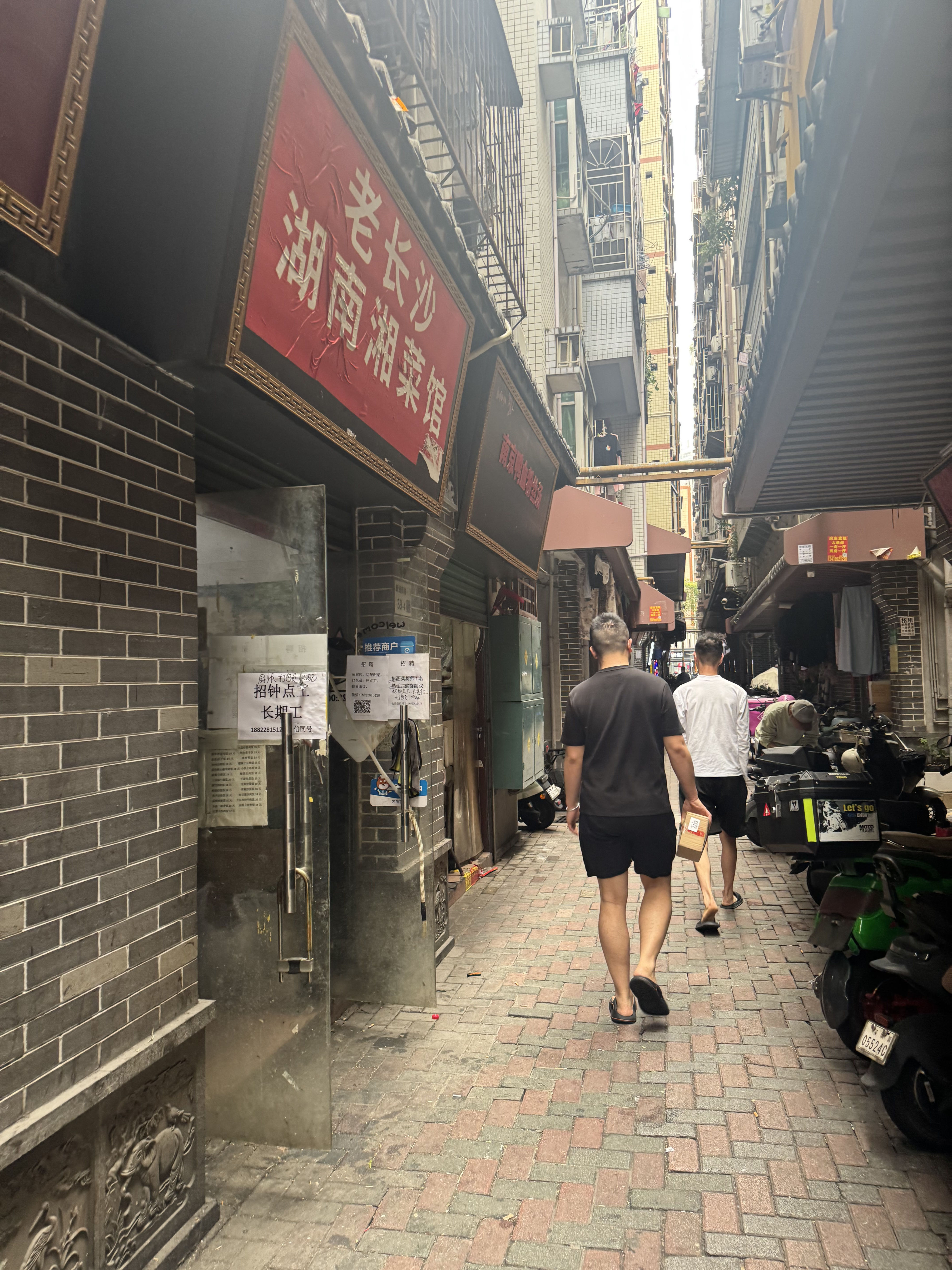 因紧邻CBD、餐饮商户占比80%,福田新洲村的外卖单量达深圳商圈平均水平一倍多,被称作“外卖村”。走进村内深巷,两侧门面几乎全是外卖店,骑手穿梭其间,每家店仅靠流水台、冷藏柜、炉灶等简单设施撑起后厨,经营环境阴暗逼仄。