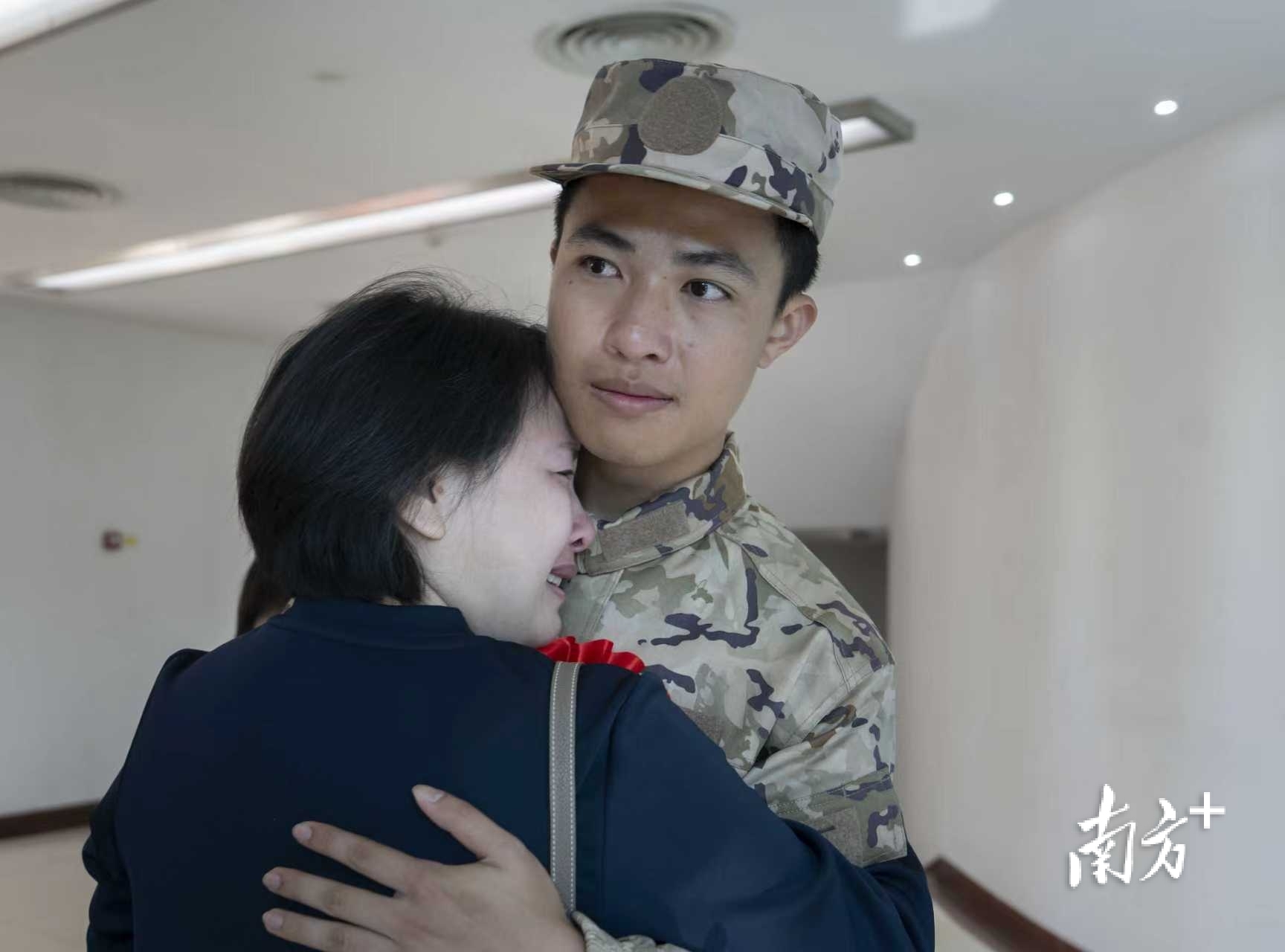 凤阳街道新兵林梓培也接过了“接力棒”,成为家中第三代军人。他的舅舅更是作为海军一员,参加过索马里护航等行动。欢送现场,林梓培的妈妈眼里闪着泪光,紧紧拥抱儿子,“他参军报国的意志很坚定,从报名、体检一步步走到现在,终于圆梦军旅。我们全力支持他。”