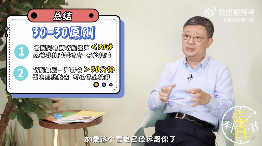 中国气象局原公共气象服务首席朱定真表示,雷雨天气,有两个“30”要谨记。