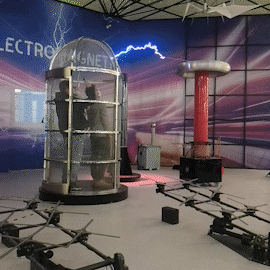 当电场或电磁波与法拉第笼接触时,笼内的自由电子会在导电材料表面重新排列,以中和外部电场的影响。这一过程确保了笼内空间的电场强度维持在一个极低的水平,有时甚至接近于零。